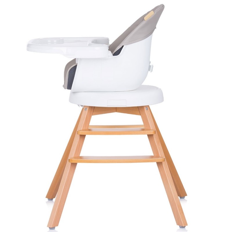 • Poate fi utilizat in 3 moduri: scaun de masa, scaunel prin indepartarea prelungirii picioarelor de lemn sau ca inaltator scaun de masa prin montarea pe un scaun