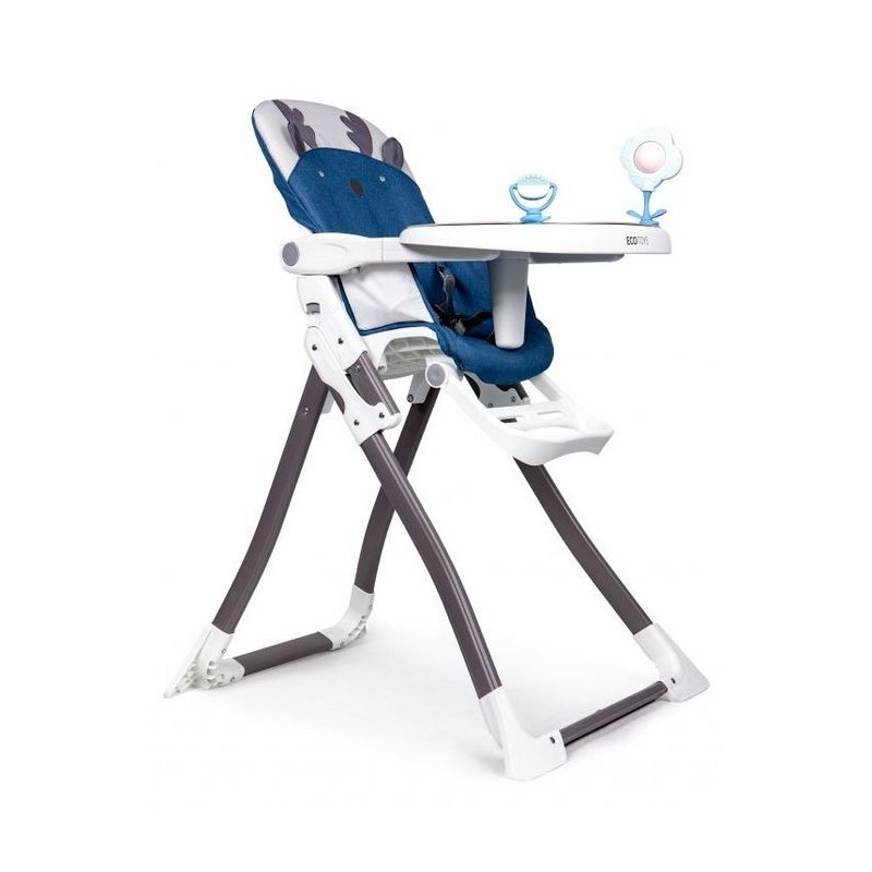 Tava este reglabilă, astfel încât să îi puteți ajusta poziția la vârsta copilului. Pe tavă există două jucării colorate care vor încuraja copilul dumneavoastră să se joace mâncând și să-l folosească cu drag.