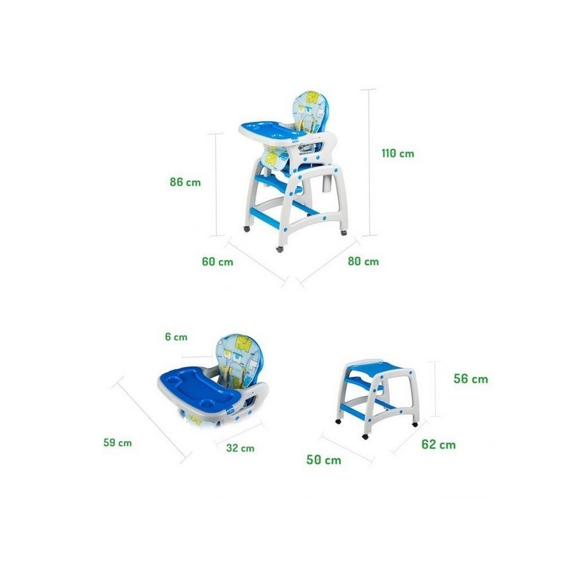 - Poate fi folosit ca scaun de masă sau scăunel cu o măsuță de joacă