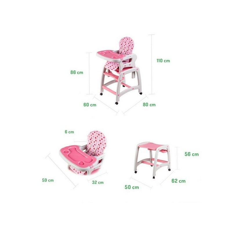 • Poate fi folosit ca scaun de masă sau scăunel cu o măsuță de joacă