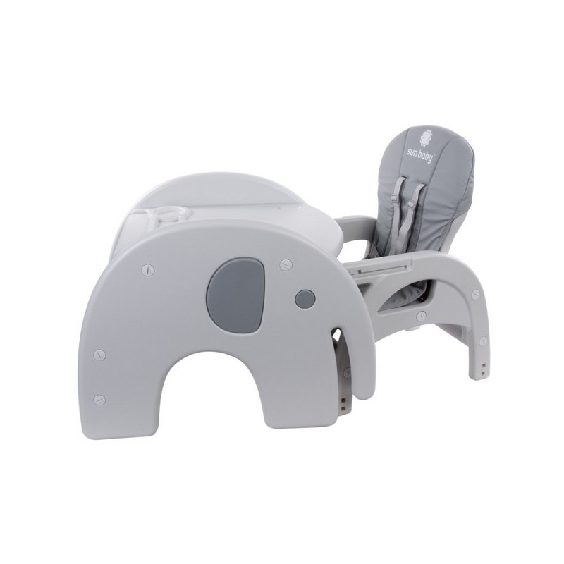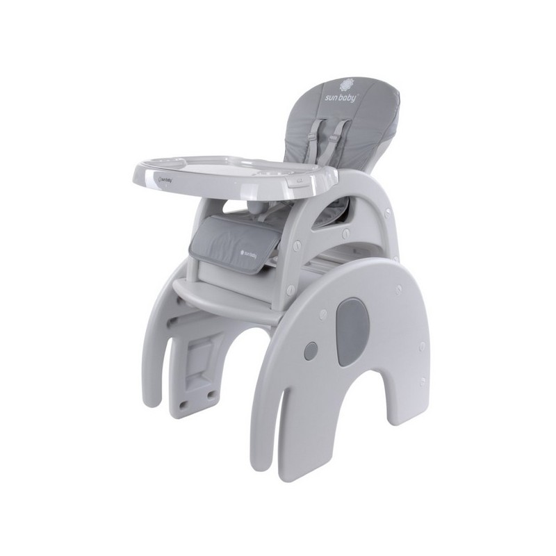 Are doua functii intr-una singura - scaun inalt si masa de joaca cu scaun.