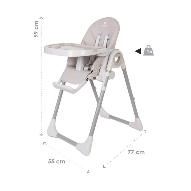Cadrul scaunului Fidi este din otel. Un scaun solid si sigur pentru hranirea bebelusilor. Prezinta roti din plastic pe picioarele din spate ale scaunului, ceea ce il face foarte usor de miscat.