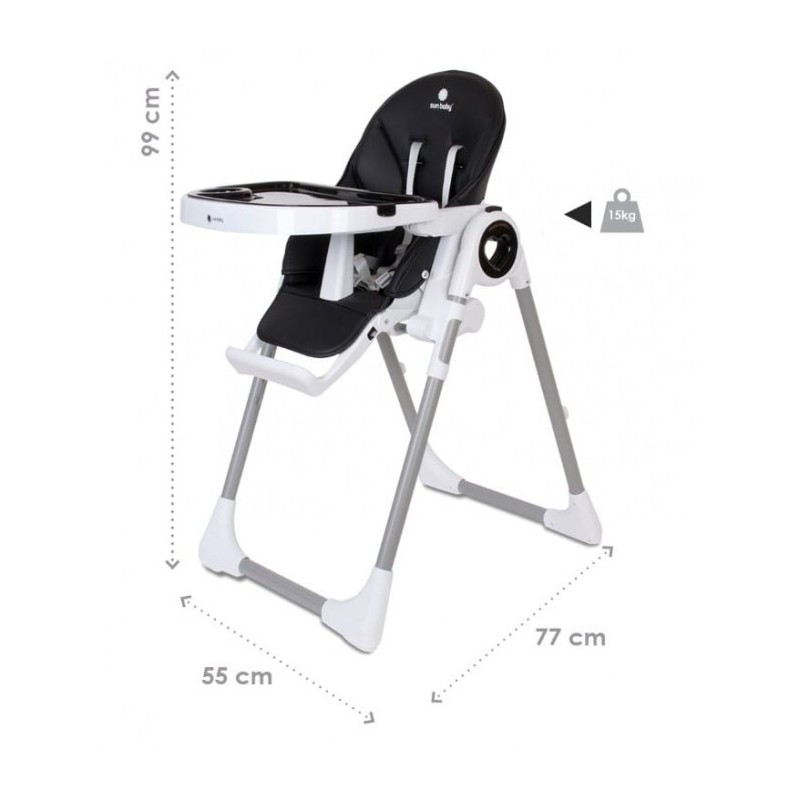 Un scaun inalt cu functe de balansoar. Scaunul are o functie de pliere profunda, datorita careia copilul poate face un pui de somn dupa pranz.