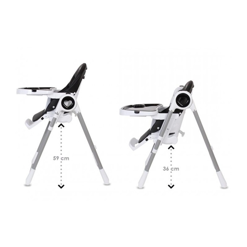 Scaunul are si o masa retractabila cu o tava pe care copilul poate manca, se poate juca sau desena. Confortul este asigurat si de suporturi pentru picioare reglabile (reglare in trei trepte).