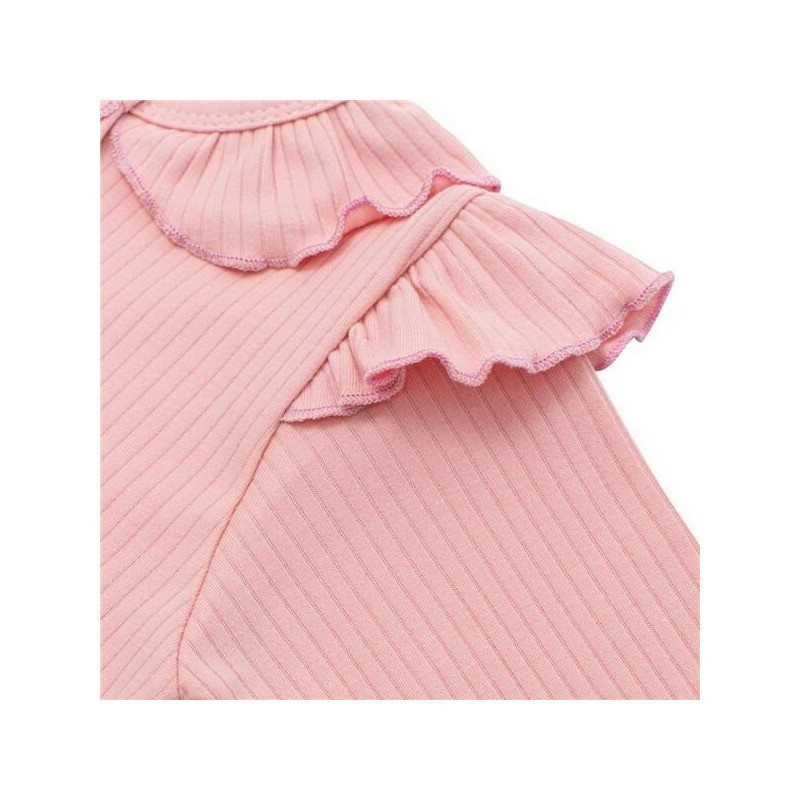 Set 2 piese: body cu maneca lunga si pantalonasi cu botosei Cu volanase Marime 68 Din bumbac 100% New Baby Stripes Pink