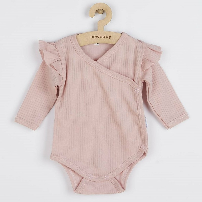 Set 2 piese: body cu maneca lunga si volanas pantaloni cu botosei Marime 56 Din bumbac 100% New Baby Practical Pink