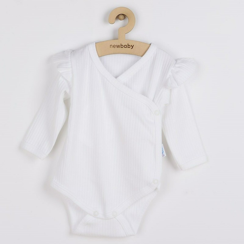 Set 2 piese: body cu maneca lunga si volanas pantaloni cu botosei Marime 56 Din bumbac 100% New Baby Practical White