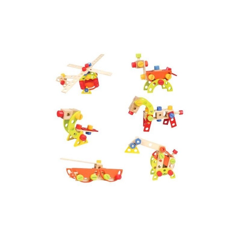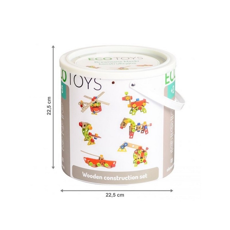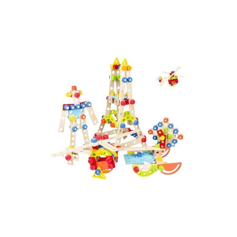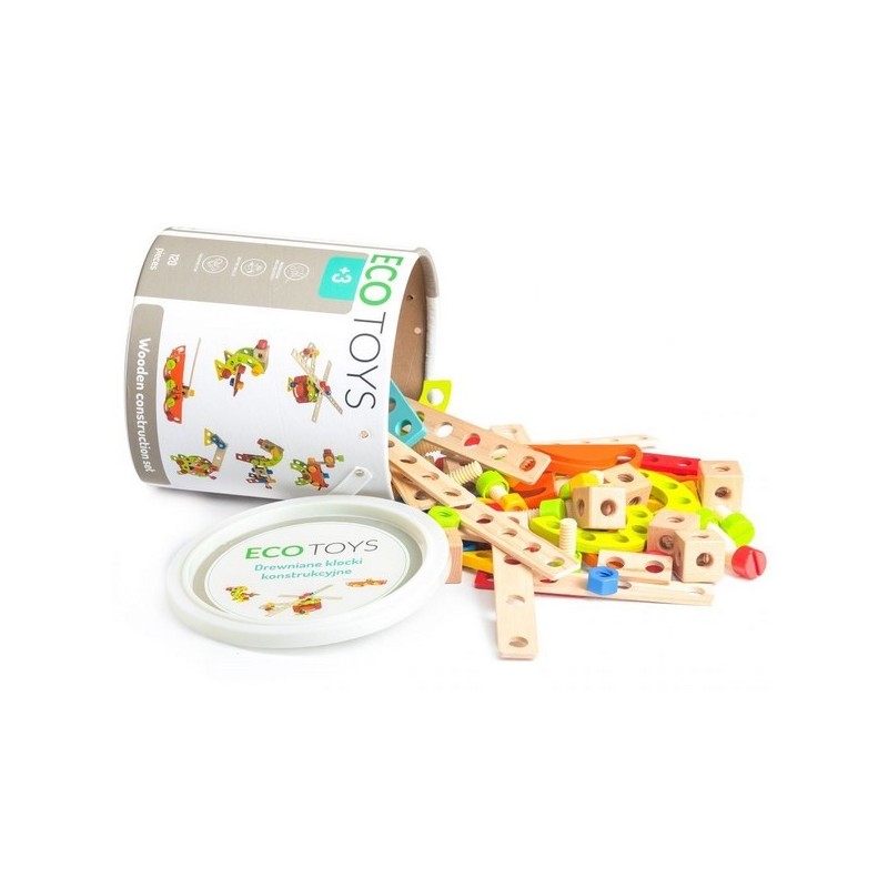 Puteți construi un castel, un turn sau un întreg oraș din cuburi de construcții colorate. Jocul îmbunătățește mișcarea motorie și abilitățile combinatorii. Jocul conține 120 de cuburi din lemn, colorate.