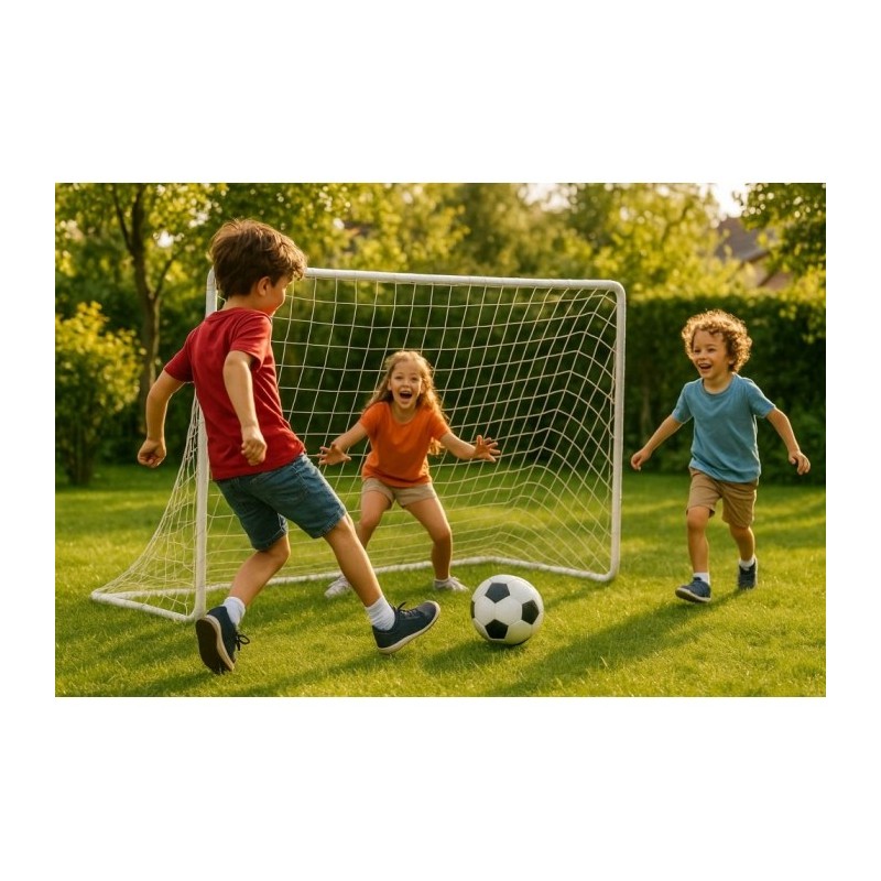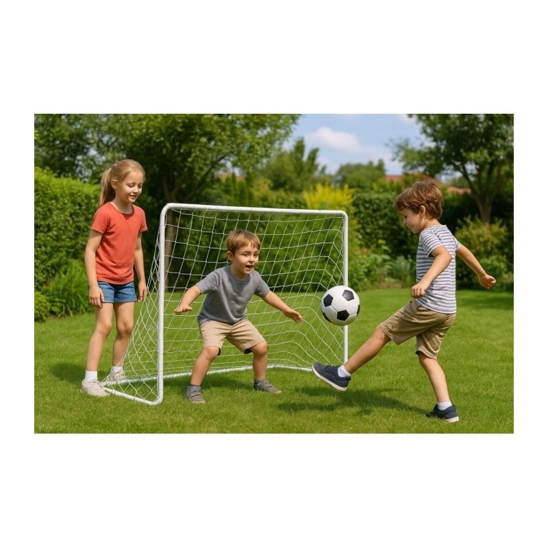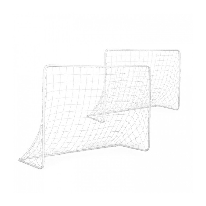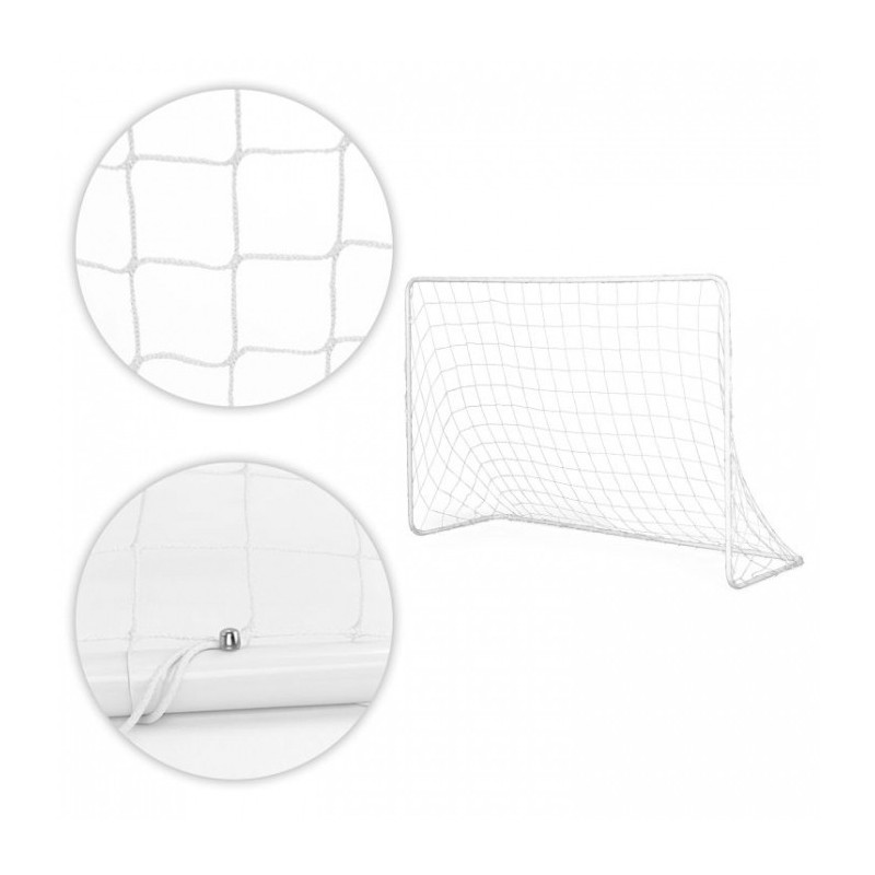 Portile sunt realizate din tevi puternice de otel conectate cu zavoare. Plasa este atasata de rama portii cu sforile incluse in set. Pentru a imbunatatii stabilitatea portii, atasati-o la sol cu suruburile metalice incluse. O poarta mare de fotbal cu dimensiuni de 180 x 61 x 122 cm va fi perfecta pentru gradina dvs.