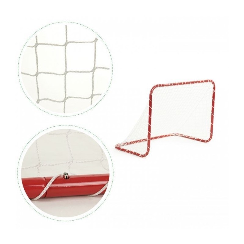 Setul este format din doua porti pentru a juca fotball. Constructia este realizata din metal, ceea ce il face adecvat pentru utilizare in toate conditiile. Portile sunt atasate la sol cu carlige metalice.