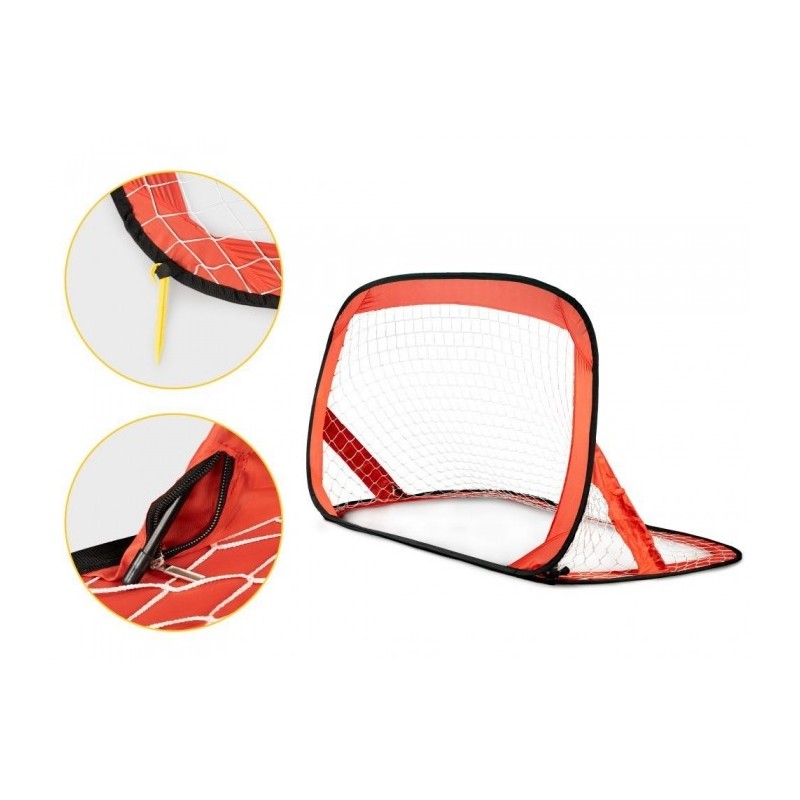 Setul este format din doua porti de fotbal. Structura portii este autodemontabila, astfel incat acestea sunt gata de utilizare in toate conditiile. Portile sunt prinse de sol cu ajutorul cuielor metalice atasate.