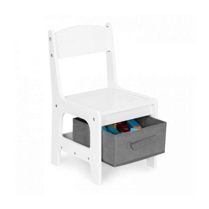 Sub sezutul scaunelor sunt sertare incapatoare, din material textil, perfecte pentru depozitarea jucariilor. Setul este perfect pentru camerele copiilor, salile de joaca sau salile de asteptare.