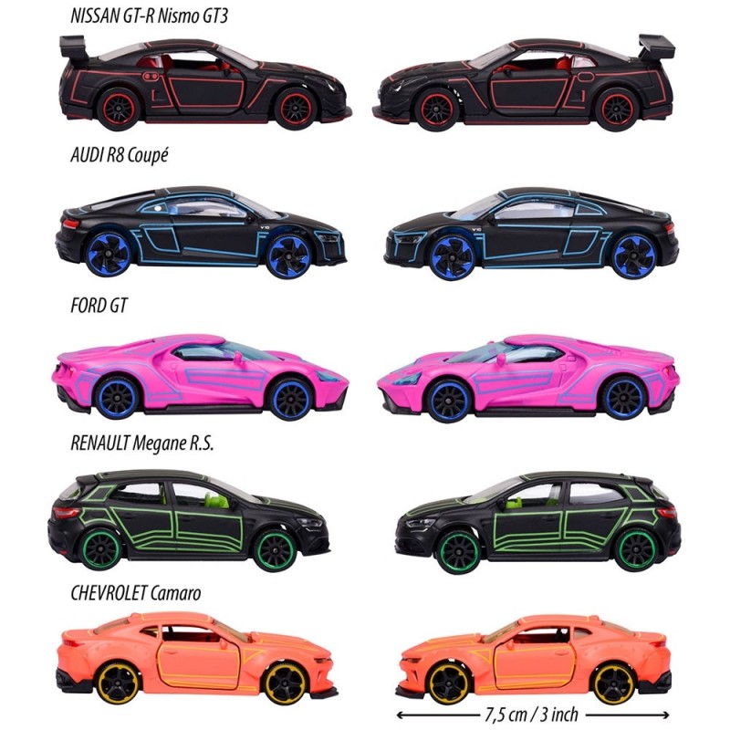 - Design atragator - Fiecare vehicul este vopsit intr-o culoare de baza mata si prezinta detalii unice de neon. Toate cele 5 modele au o licenta oficiala