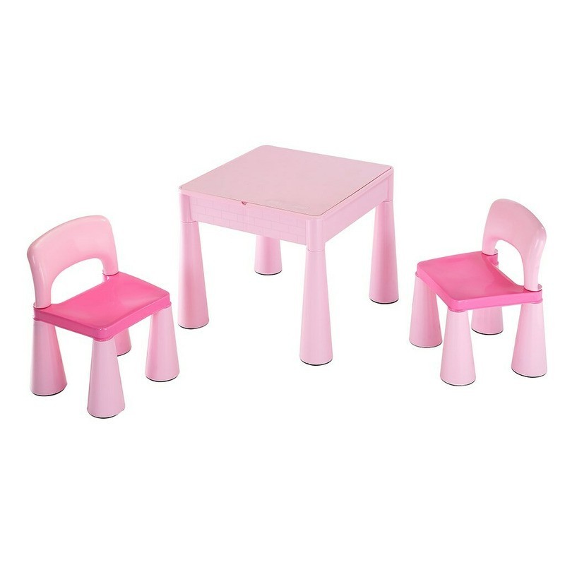 Set masuta si doua scaune pentru copii Pink Cu parte detasabila si reversibila Partea reversibila pentru Lego Duplo New Baby