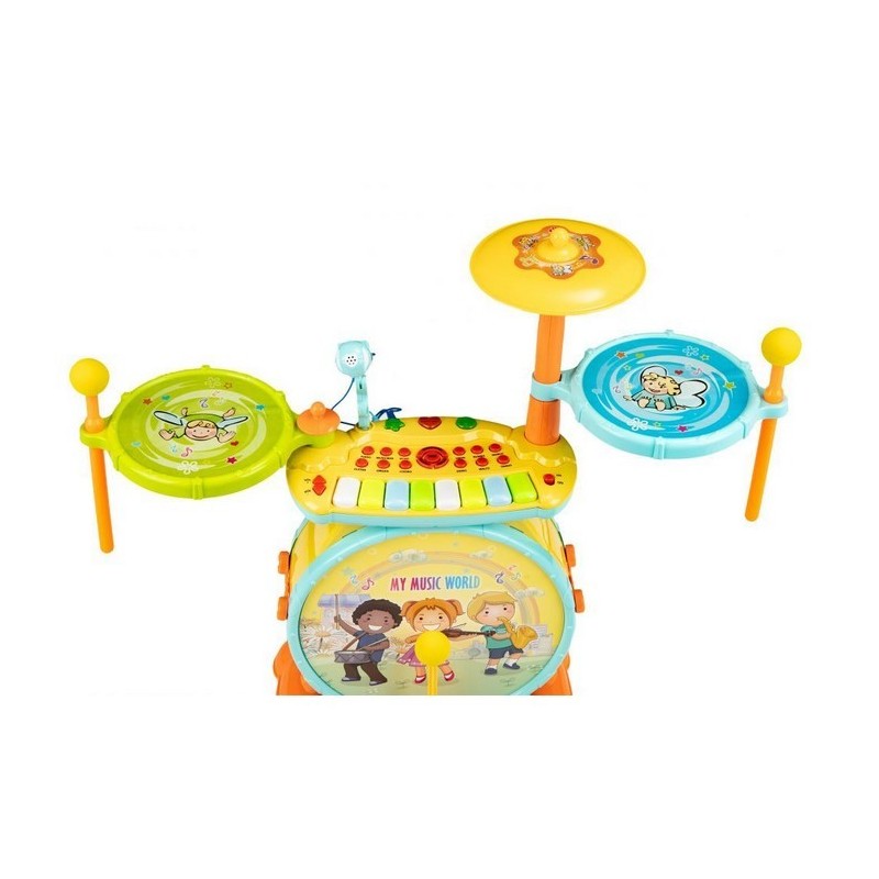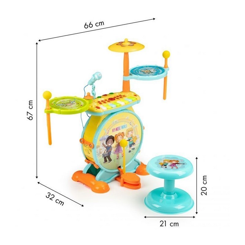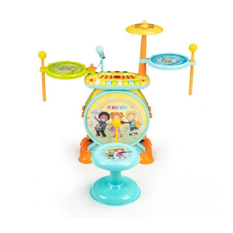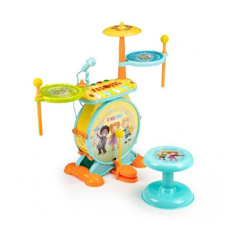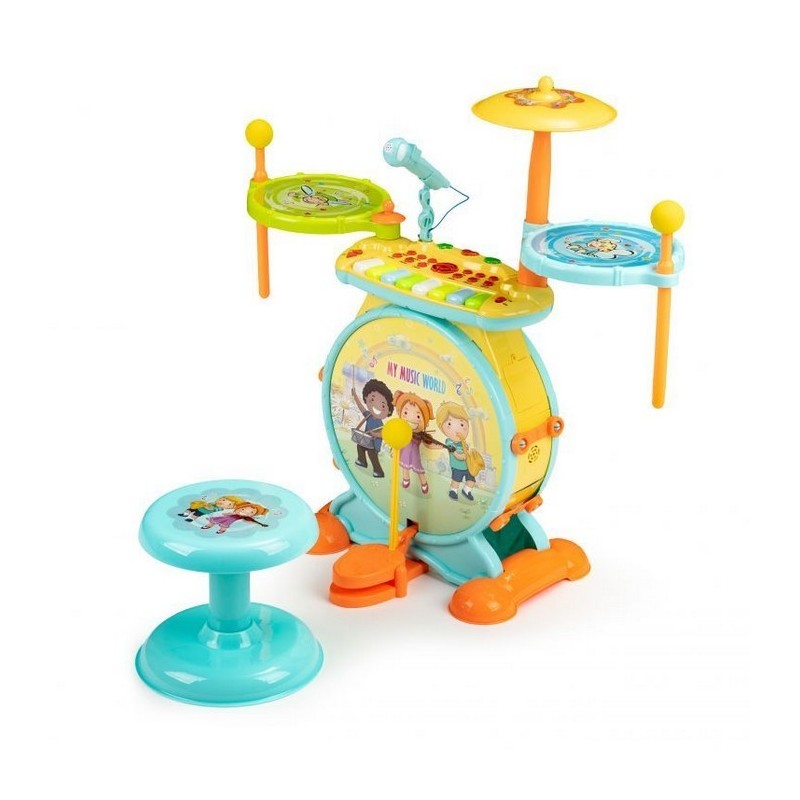 Datorita acestei jucarii, copilul tau va avea ocazia sa se mute in lumea melodiilor, sunetelor si sa compuna propriile melodii. Setul include tobe, un microfon si un scaun, datorita caruia micul tau artist va putea sa stea confortabil si sa cante la un concert. Jucaria va deveni rapid favorita si de multe ori vor exista spectacole grozave in sufragerie.