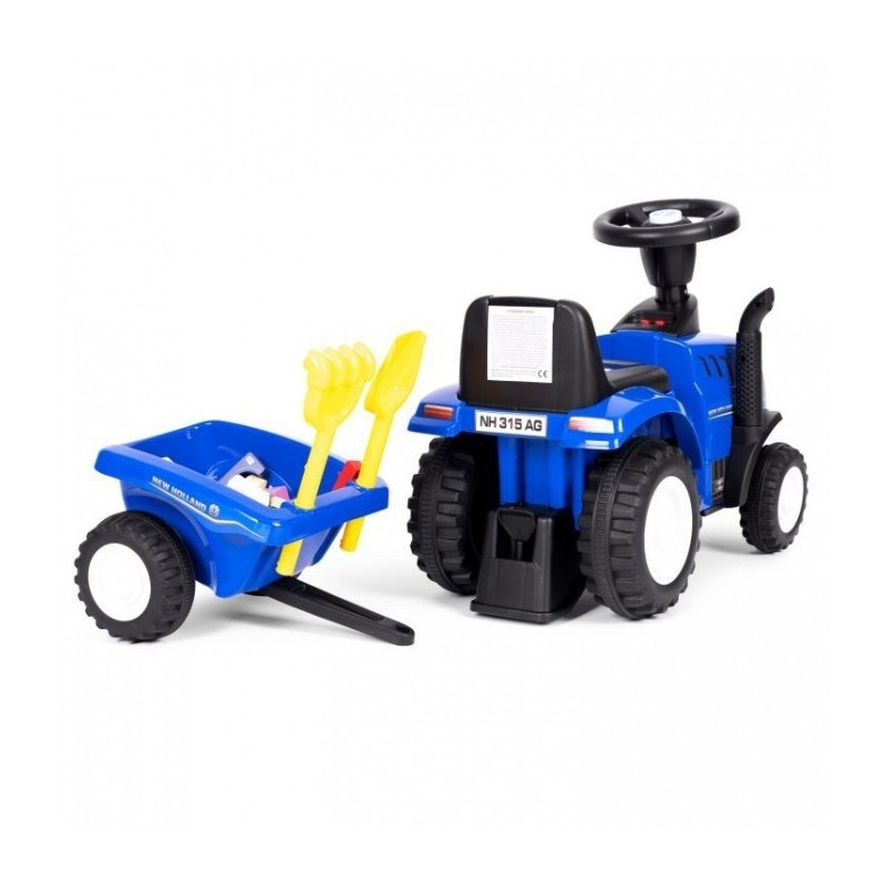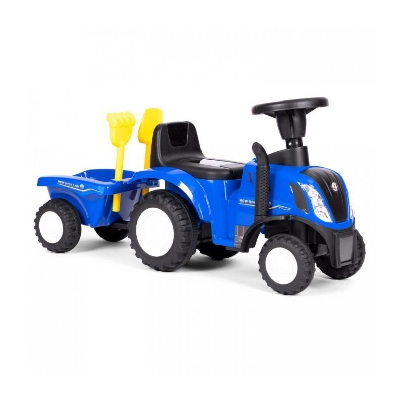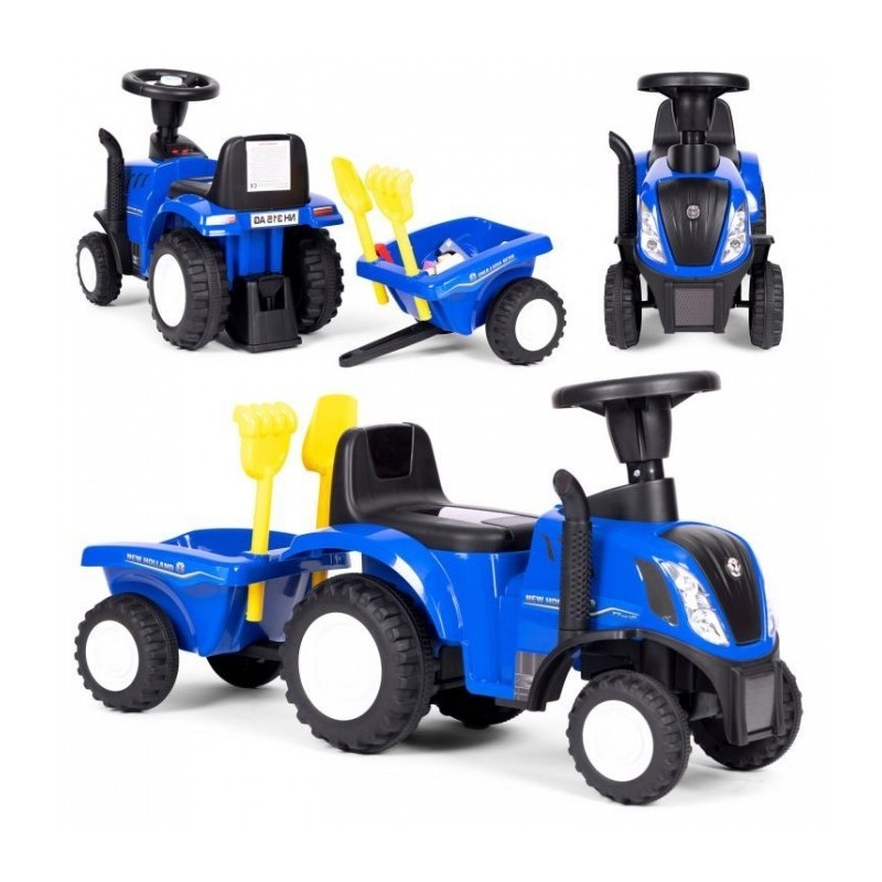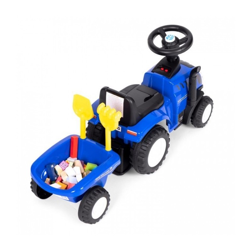 Tractorul are un volan interactiv cu claxon si sunete de motor, precum si o remorca detasabila care permite transportul diverselor obiecte. Setul include o grebla si o lopata, perfecte pentru joaca in gradina.