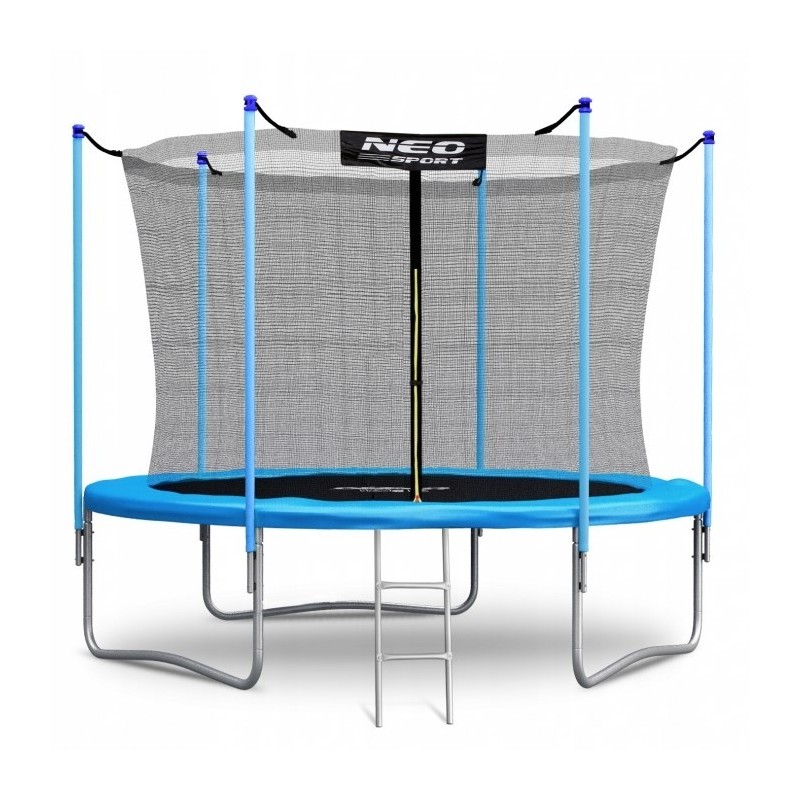 In set: trambulina de gradina, plasa de siguranta, scara metalica, manual de utilizare.