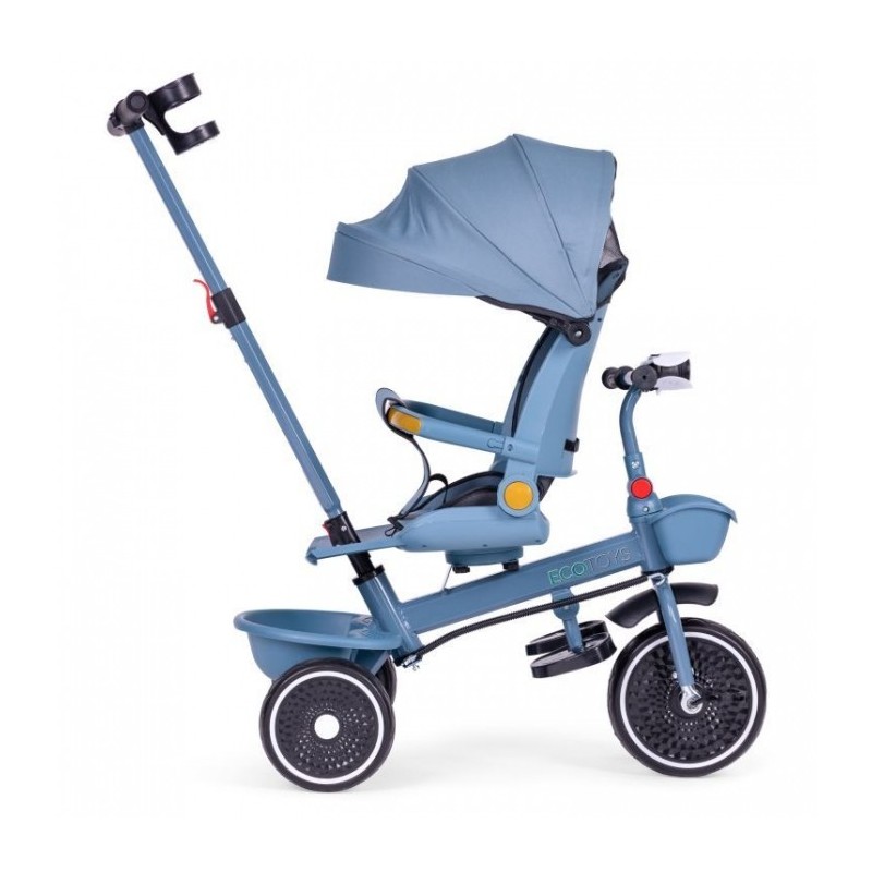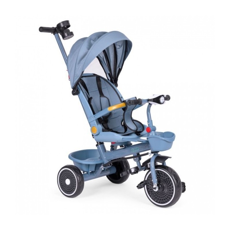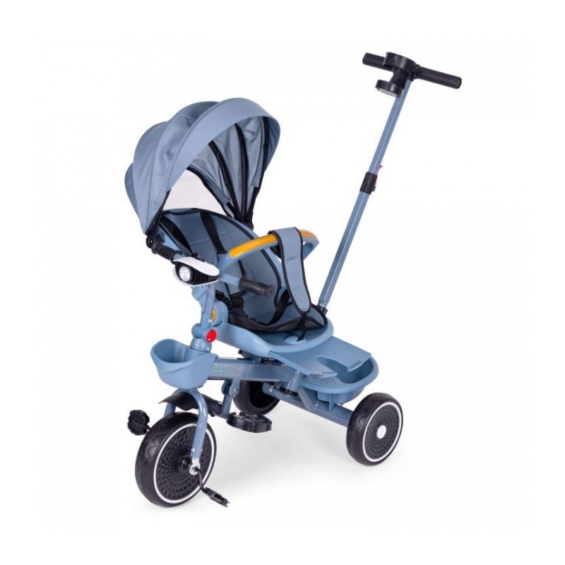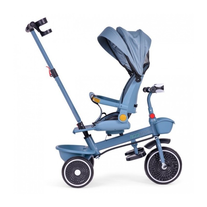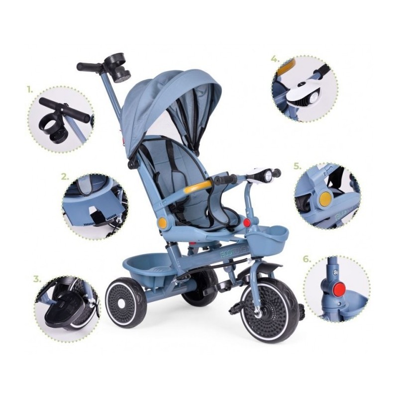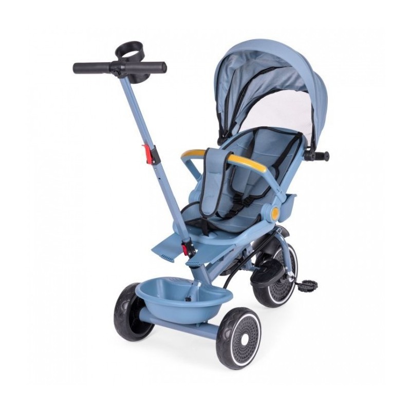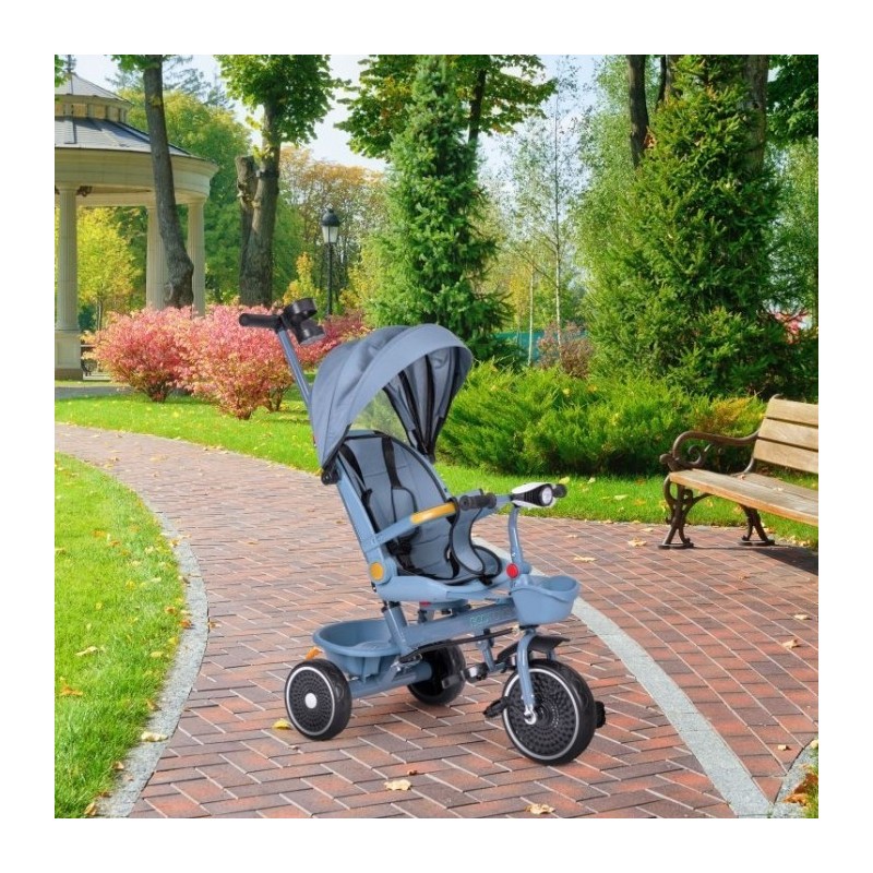 Datorita posibilitatii de dezasamblare a copertinei, a barierelor de siguranta si a manerului, tricicleta poate fi adaptata varstei si nevoilor copilului. Scaunul rotativ la 360° va permite sa va asezati copilul cu fata la dvs. sau in directia de mers, ceea ce creste confortul si interactiunea in timpul plimbarilor.
