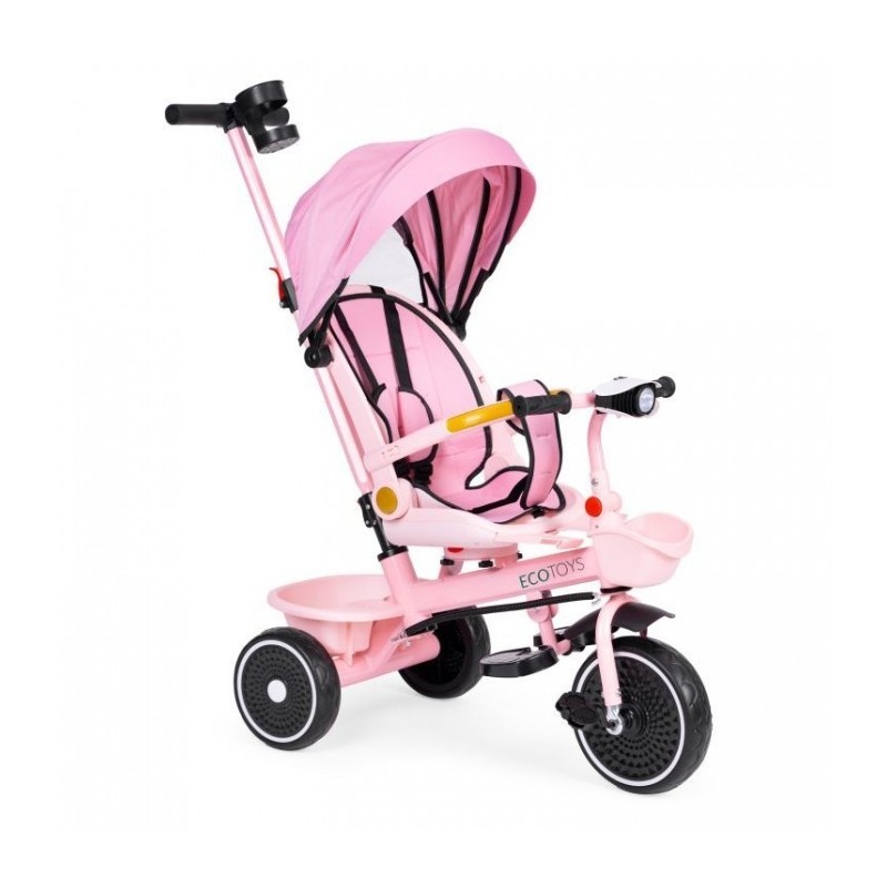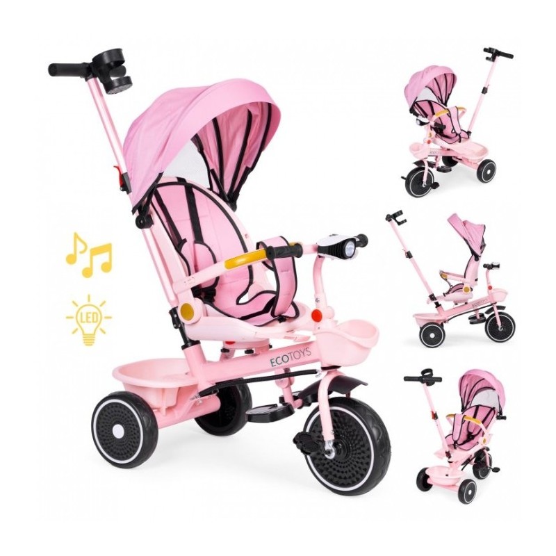 Rotile EVA durabile garanteaza o calatorie lina si silentioasa pe diferite suprafete. In plus, tricicleta este echipata cu un far care emite lumina colorata si diverse melodii, care cu siguranta vor aduce un plus tricicletei si bucurie copilului dvs.