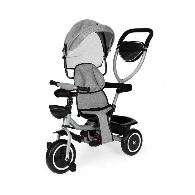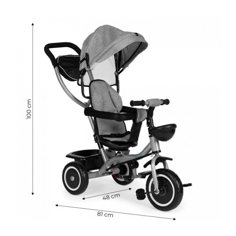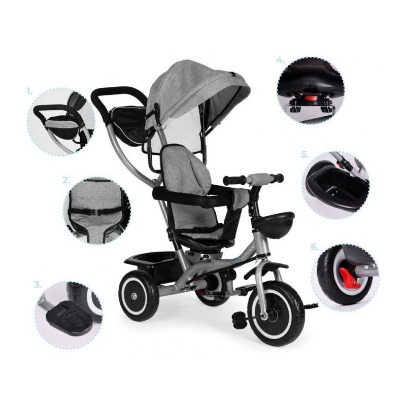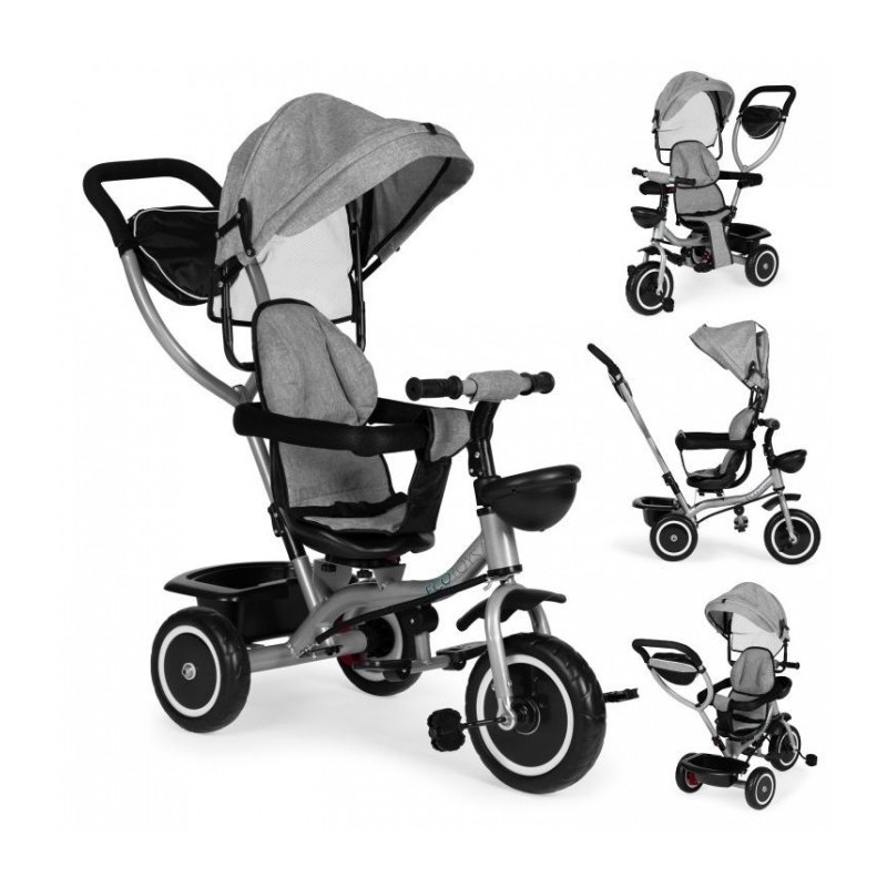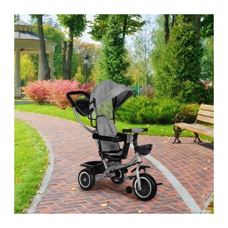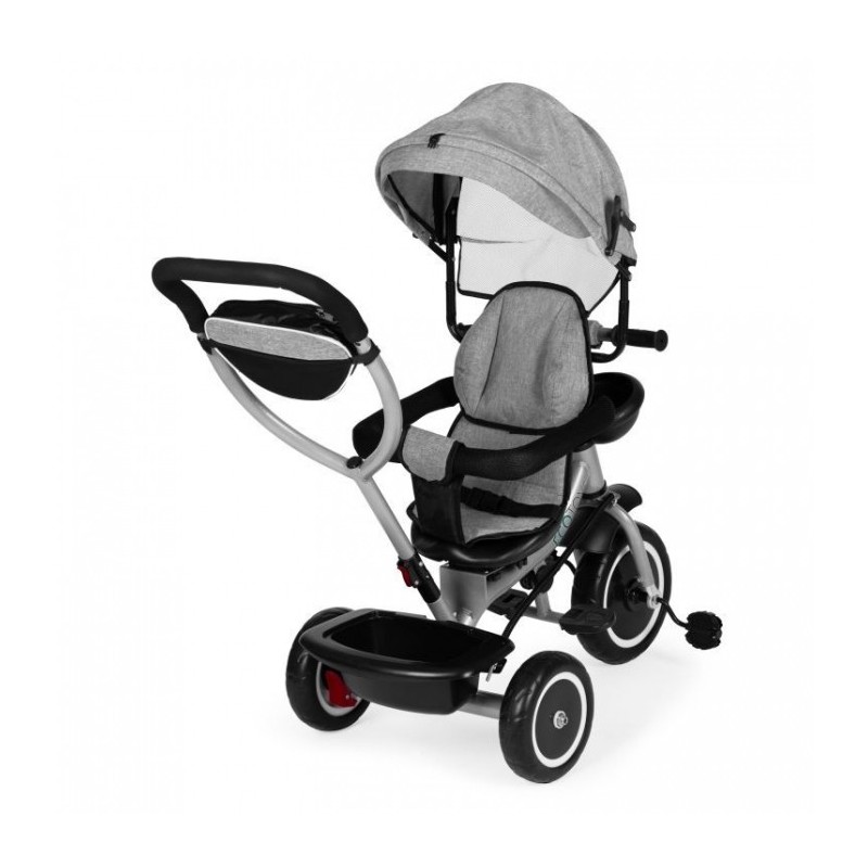 Tricicleta este echipata cu un scaun rotativ la 360° care va permite sa va asezati copilul cu fata la dvs. sau in directia de mers, ceea ce creste confortul si interactiunea in timpul plimbarilor.