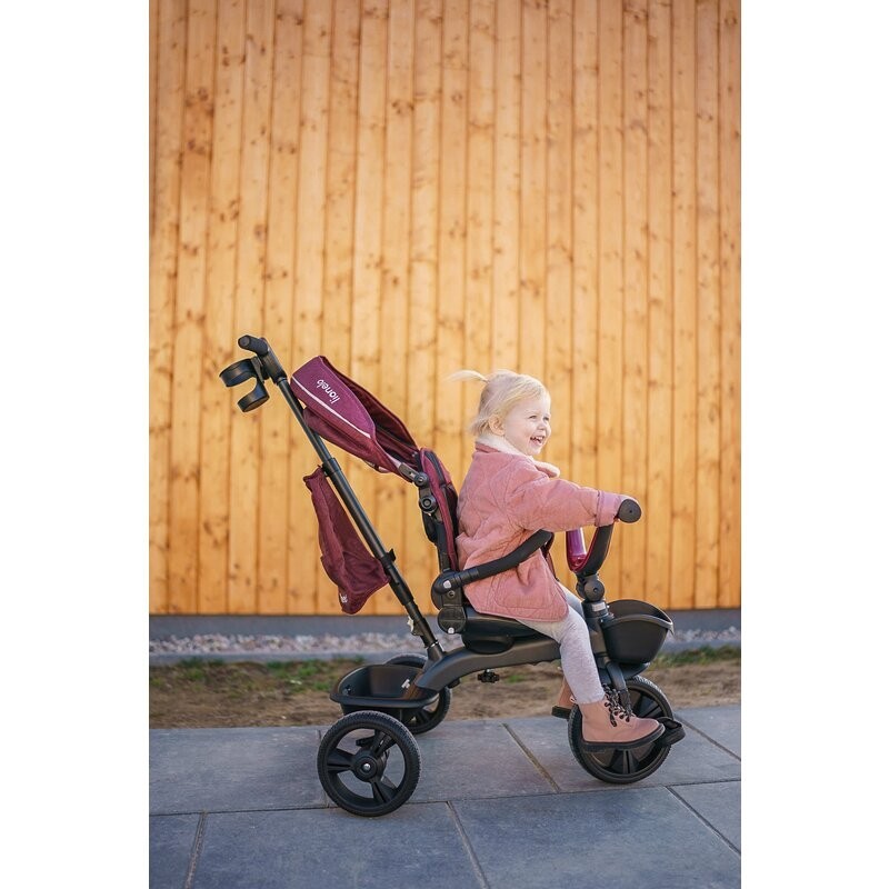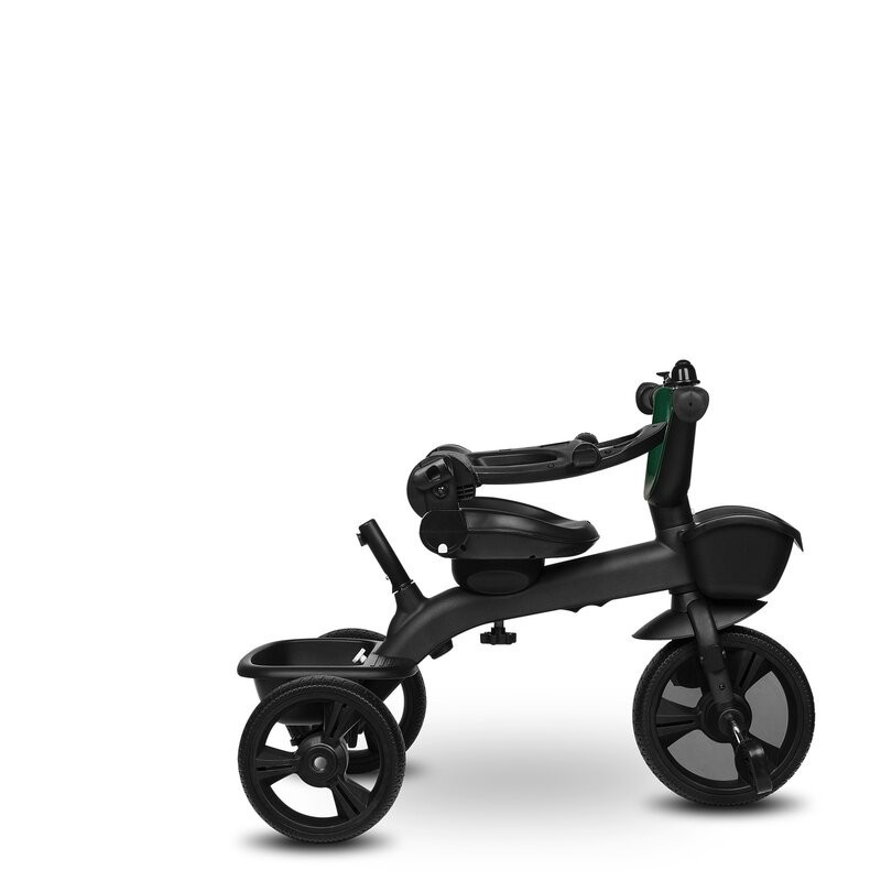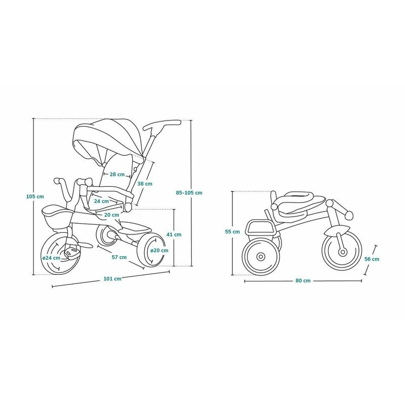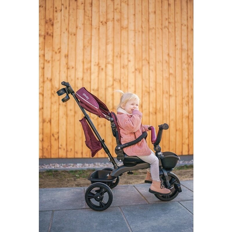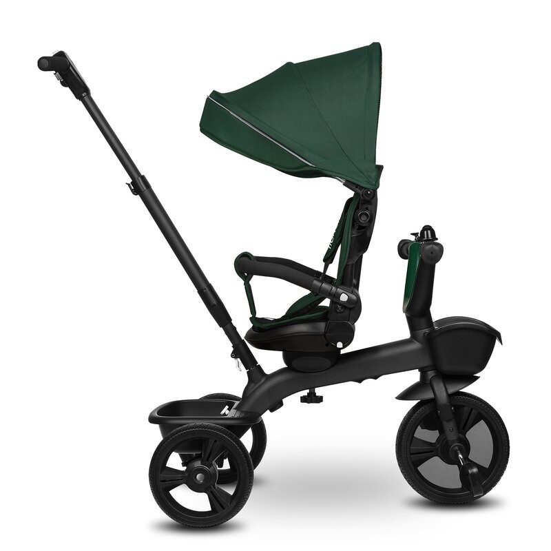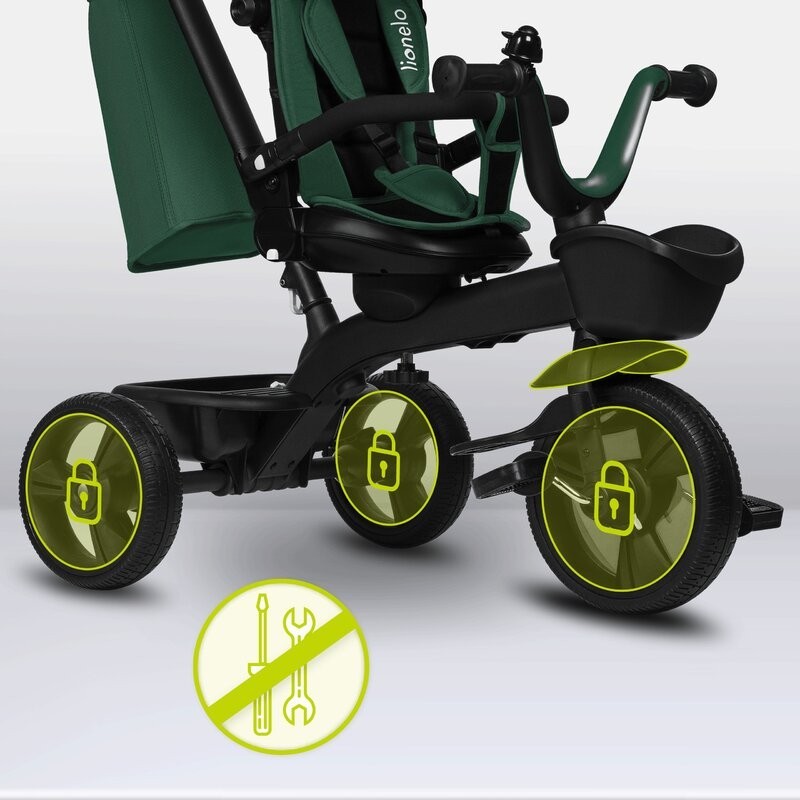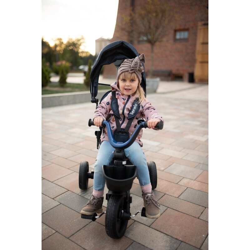 Lionelo Kori este o combinatie intre un carucior si o tricicleta clasica. Deoarece pozitia scaunului poate fi schimbata cu 180_, copilul poate calatori atat cu fata, cat si cu spatele spre directia de mers. Produsul poate fi condus cu un maner reglabil, dar copilul are permisiunea de a pedala in acelasi timp. Cand micul utilizator este suficient de inalt, puteti detasa manerul, suportul pentru picioare si arcul, astfel incat sa devina un calaret.