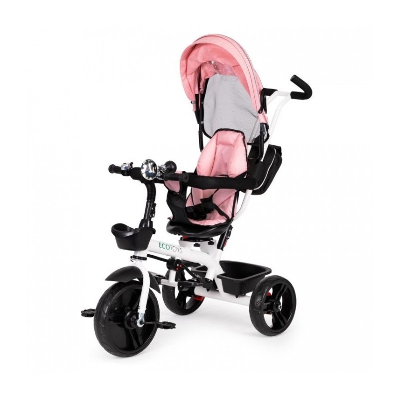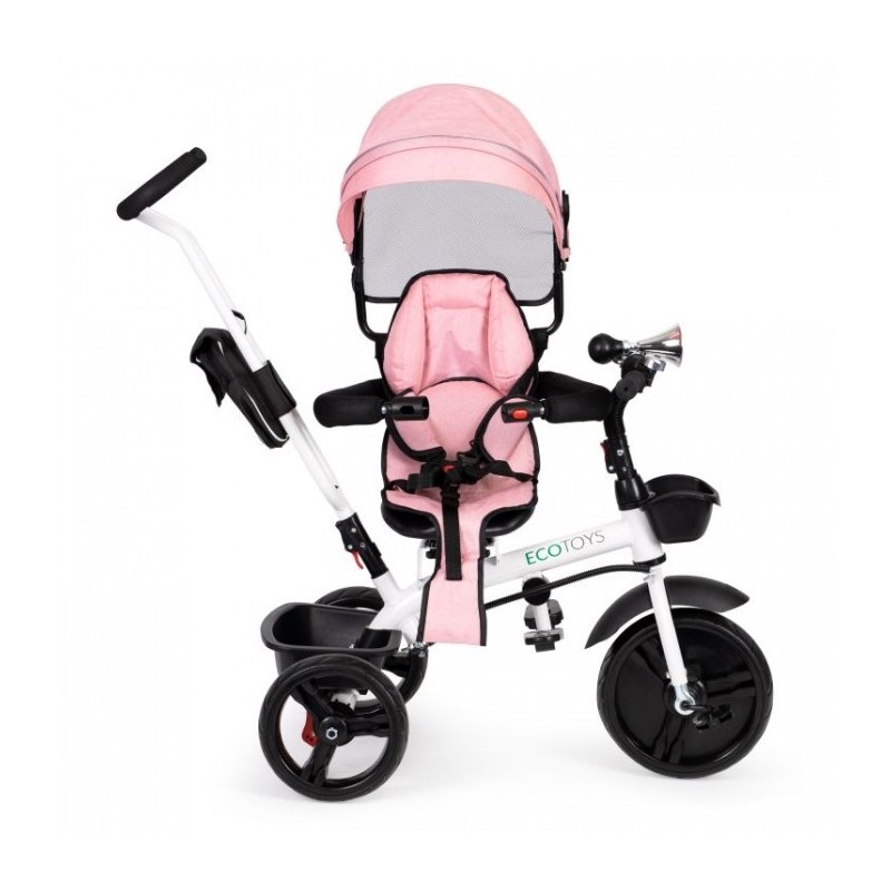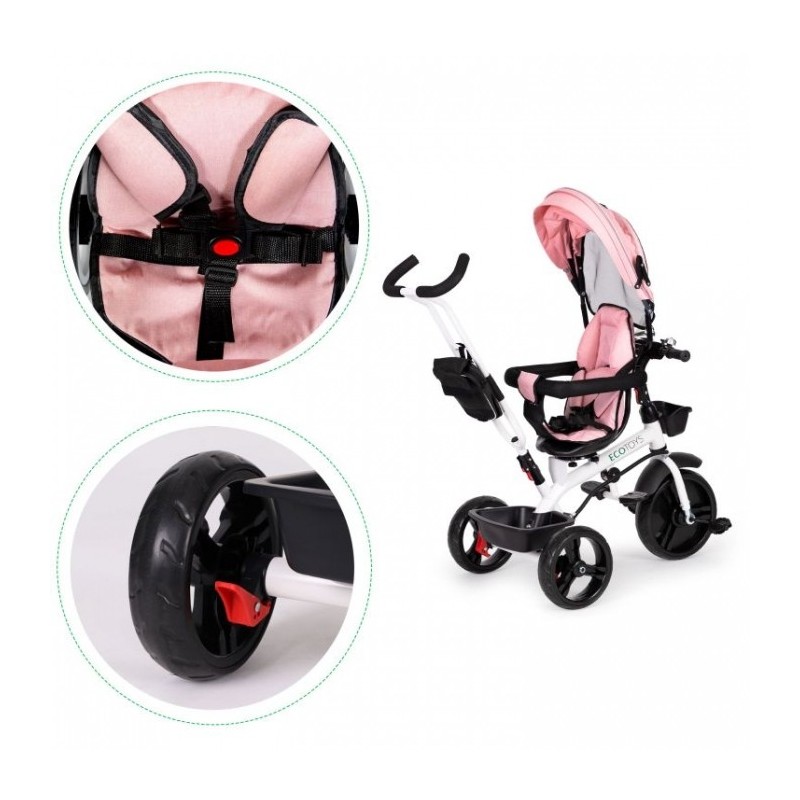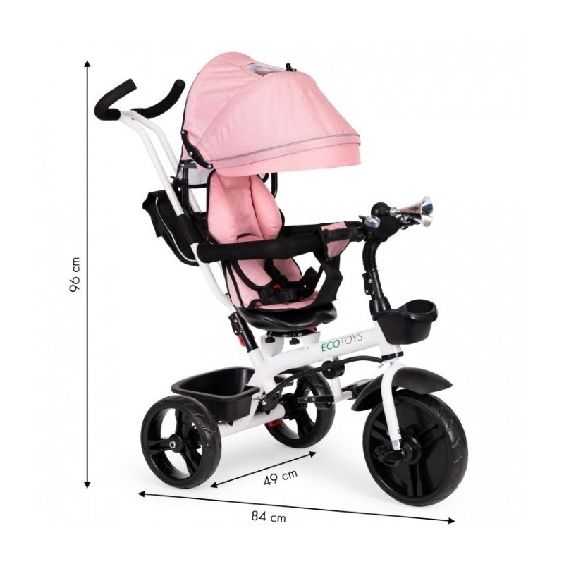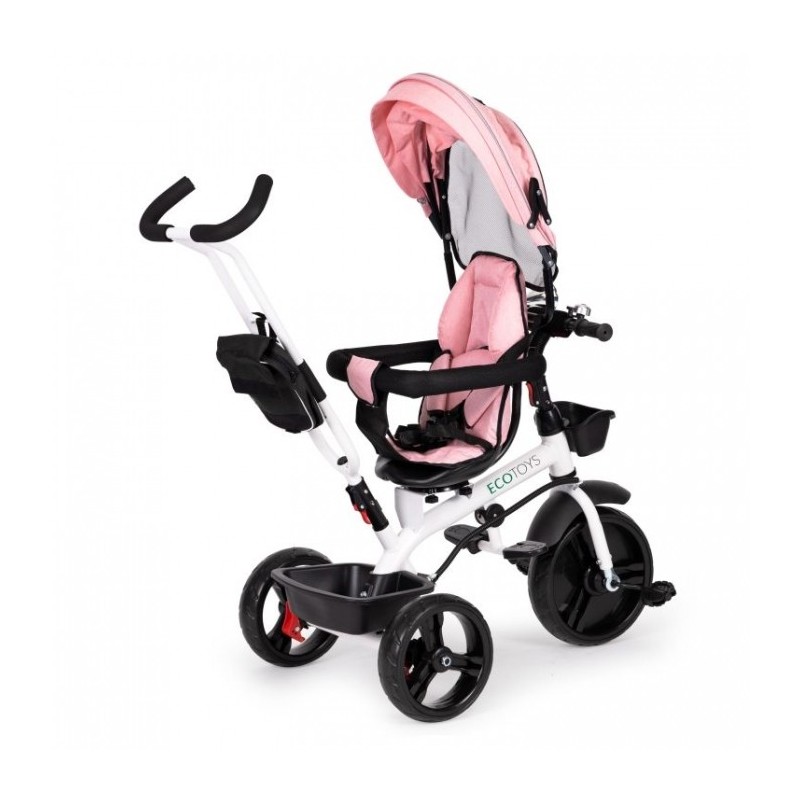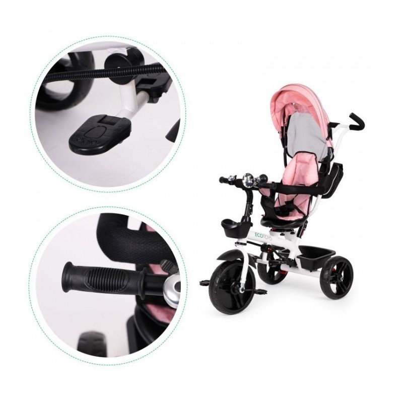 Compacta si usor de utilizat, tricicleta dispune de: un cadru din otel, parasolar pliabil, picioare pliabile, roti rezistente din spuma EVA, tija de directie ajustabila pe inaltime, frana si aparatoare de noroi, balustrade de protectie, vizorul pliabil care va proteja impotriva ploii si soarelui, imbinand astfel materialele de inalta calitate cu cele mai recente tehnologii in domeniul tricicletelor.