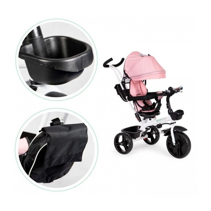 De asemenea, tricicleta este dotata cu 2 recipiente din plastic in care copilul dvs. isi poate ascunde jucariile de mica dimensiune sau comorile gasite in timpul plimbarilor.