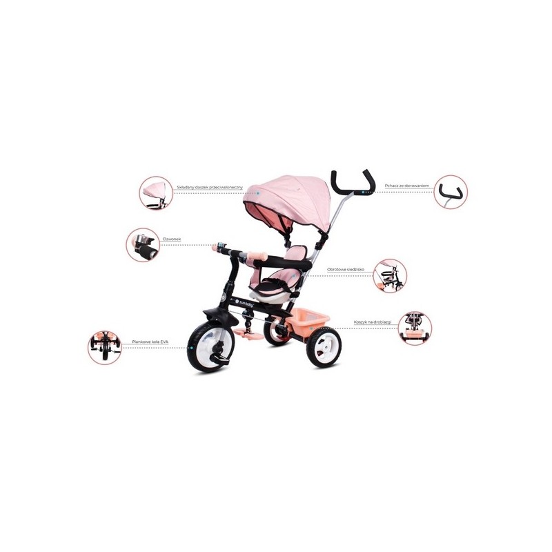 Centurile si bara de siguranta protejeaza copilul impotriva caderii de pe bicicleta. Tricicleta Fresh 360 respecta standardul EN71.