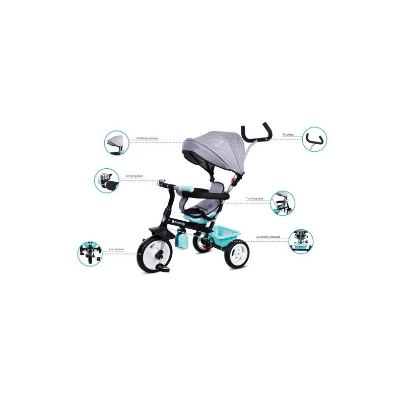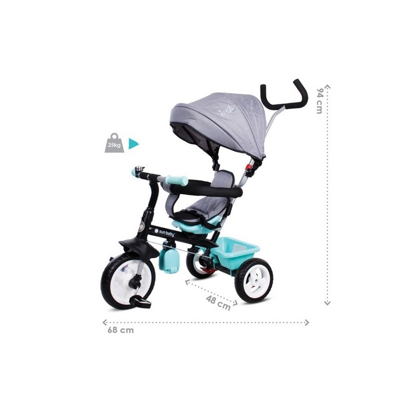 Centurile si bara de siguranta protejeaza copilul impotriva caderii de pe bicicleta. Tricicleta Fresh 360 respecta standardul EN71.
