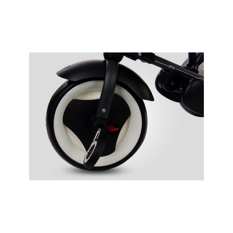 Roata din fata dispune de aparatoare si de un sistem de activare sau dezactivare a pedalelor.