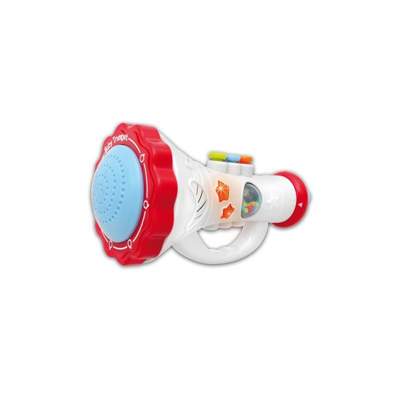 - Jucaria ce imita o trompeta/saxofonul va bucura orice copil prin efectele de lumini si sunetele declansate la apasarea butoanelor.