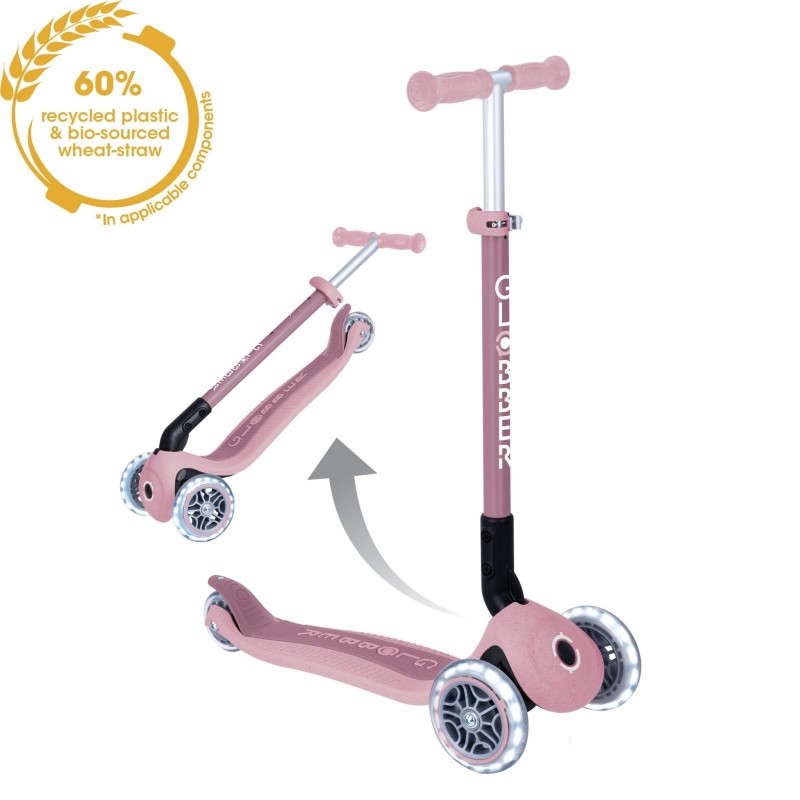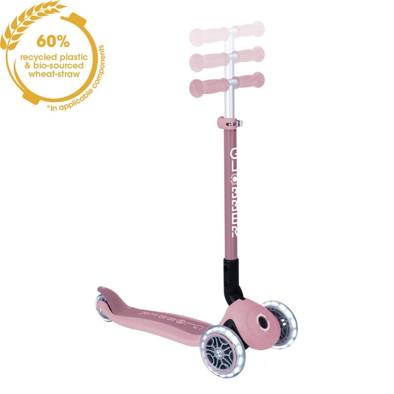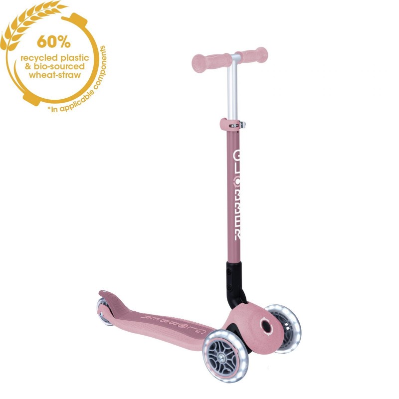 O lume mai verde pe roți: Trotineta PRIMO ECOLOGICA ajută familiile din întreaga lume să trăiască și să respire valori și alegeri ecologice. Este fabricat din 60% plastic reciclat conform Standardului Global și paie de grâu biodegradabile*.