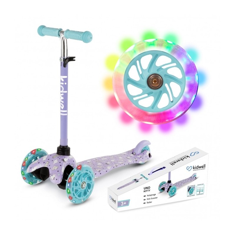 Trotineta UNO cu trei roti este perfect echilibrata, stabila si va deveni cu siguranta partenerul de joaca al copilului tau. Rotile cu LED iluminate si designul interesant vor incanta fiecare mic utilizator.