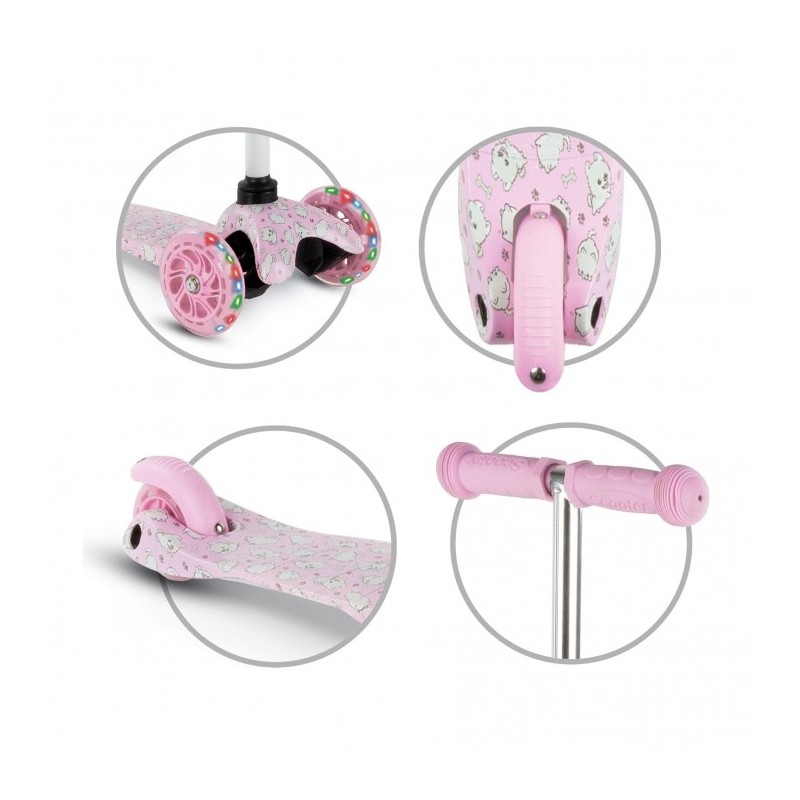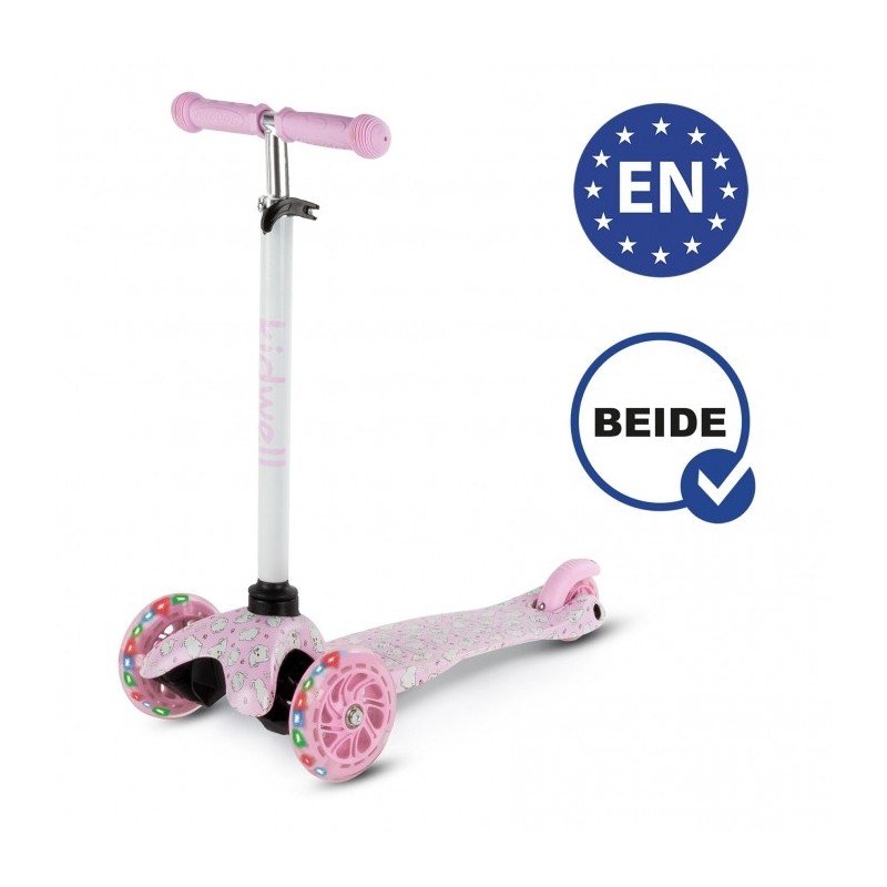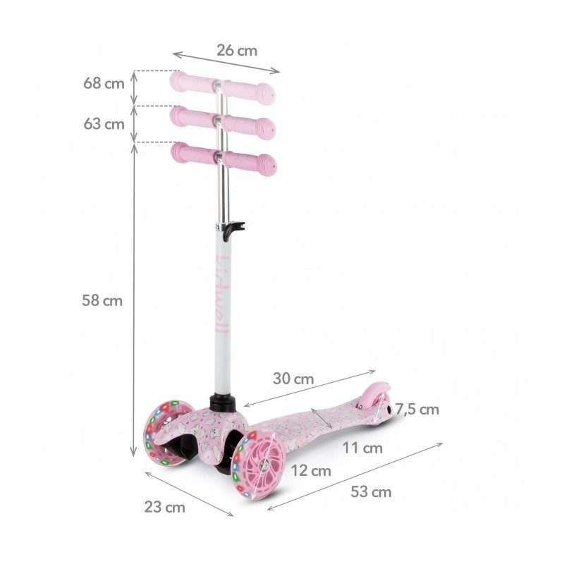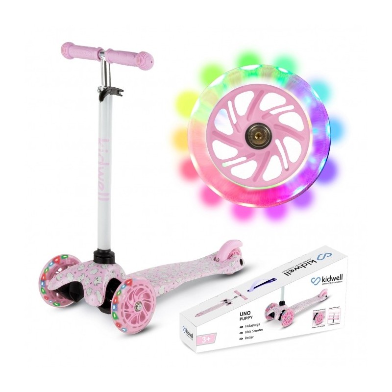 Trotineta UNO cu trei roti este perfect echilibrata, stabila si va deveni cu siguranta partenerul de joaca al copilului tau. Rotile cu LED iluminate si designul interesant vor incanta fiecare mic utilizator.