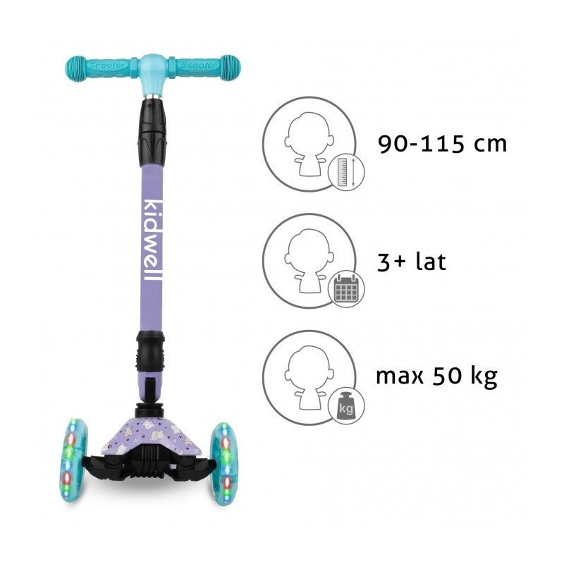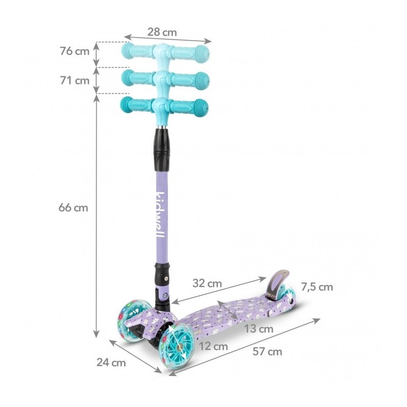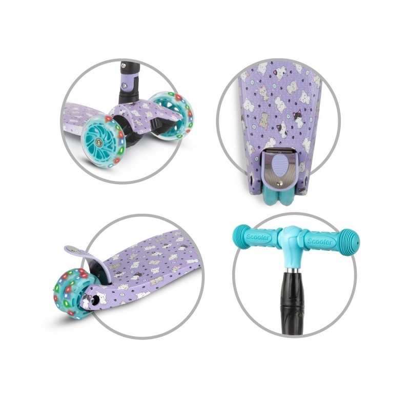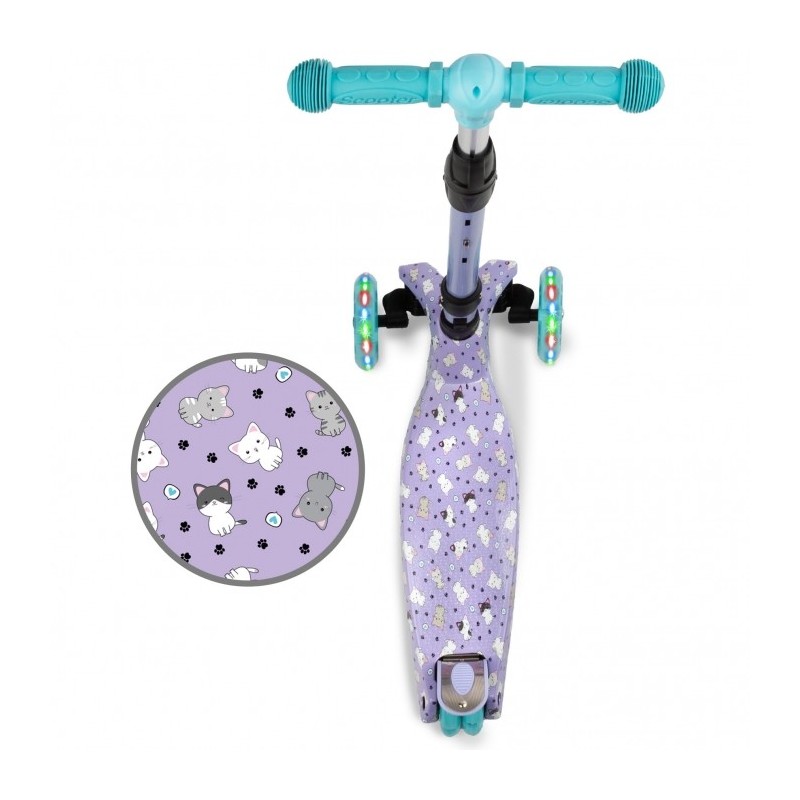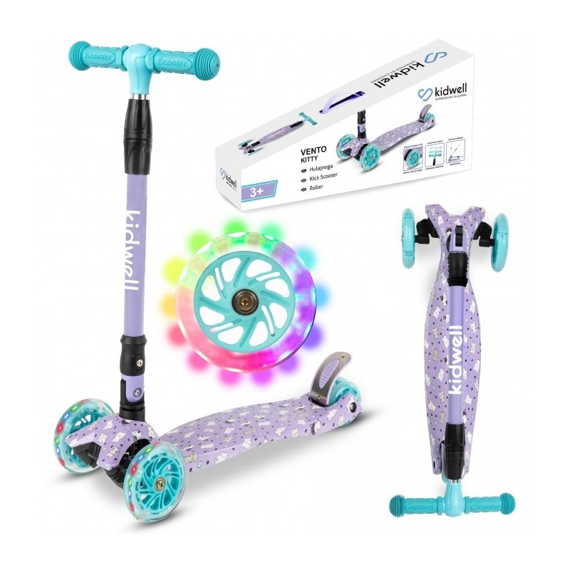 Trotineta VENTO cu trei roti este perfect echilibrata, stabila si va deveni cu siguranta partenerul de joaca al copilului tau. Rotile cu LED iluminate si designul interesant vor incanta fiecare mic utilizator.
