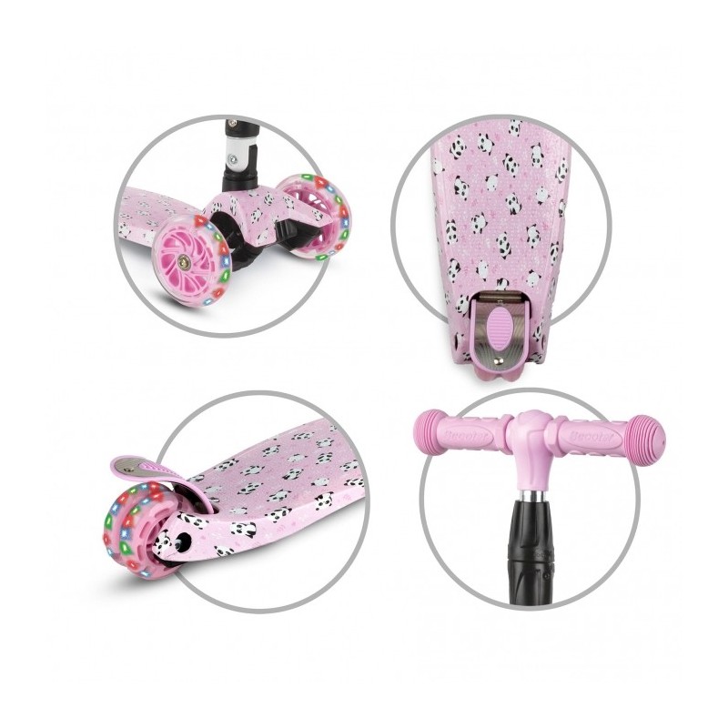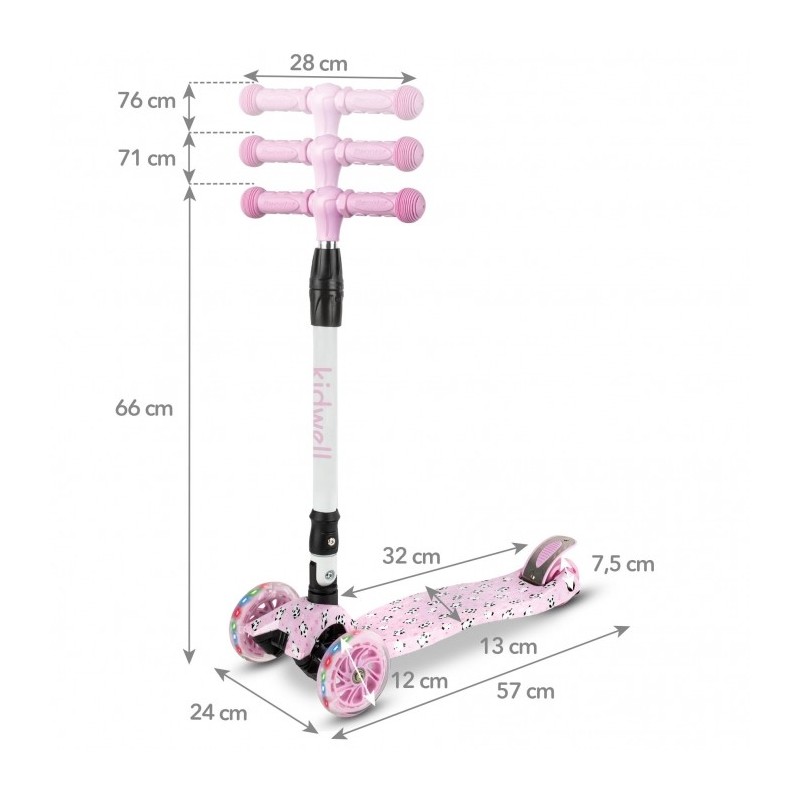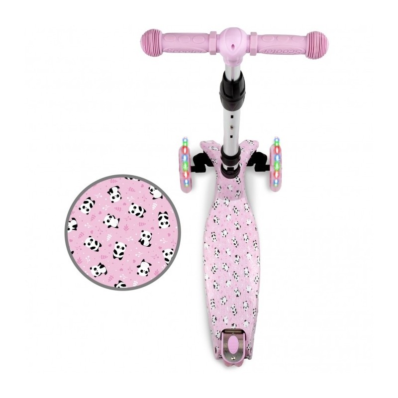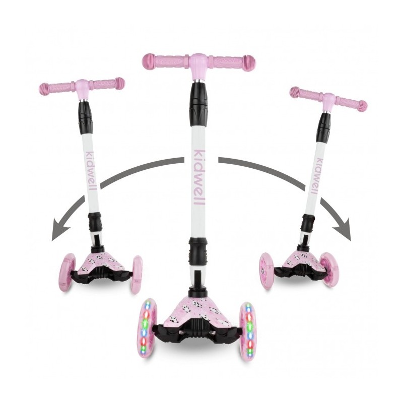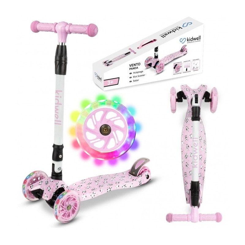 Trotineta VENTO cu trei roti este perfect echilibrata, stabila si va deveni cu siguranta partenerul de joaca al copilului tau. Rotile cu LED iluminate si designul interesant vor incanta fiecare mic utilizator.
