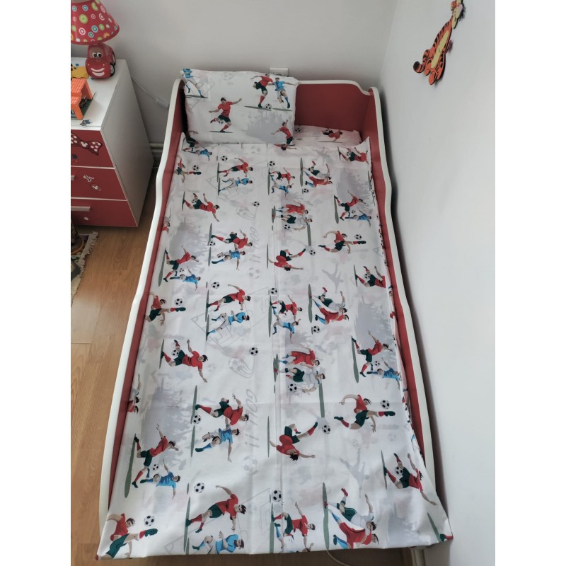 Este potrivit atat pentru paturile de tineret care au salteaua de 140/70 cm cat si pentru cele care au salteaua de 160/80 cm.