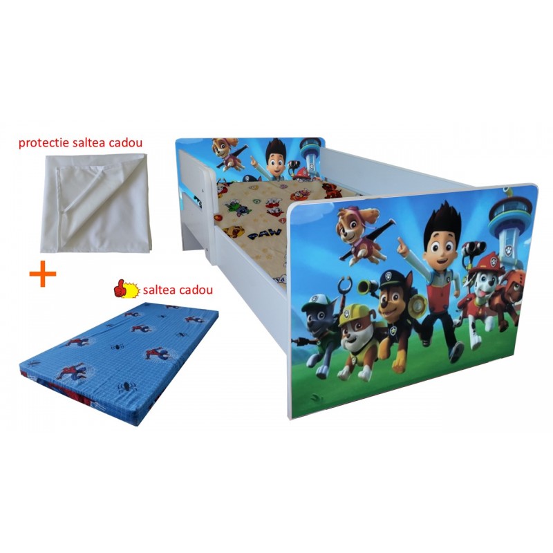 Patul de copii vine cu saltea cadou din spuma de poliuretan de 6cm grosime.