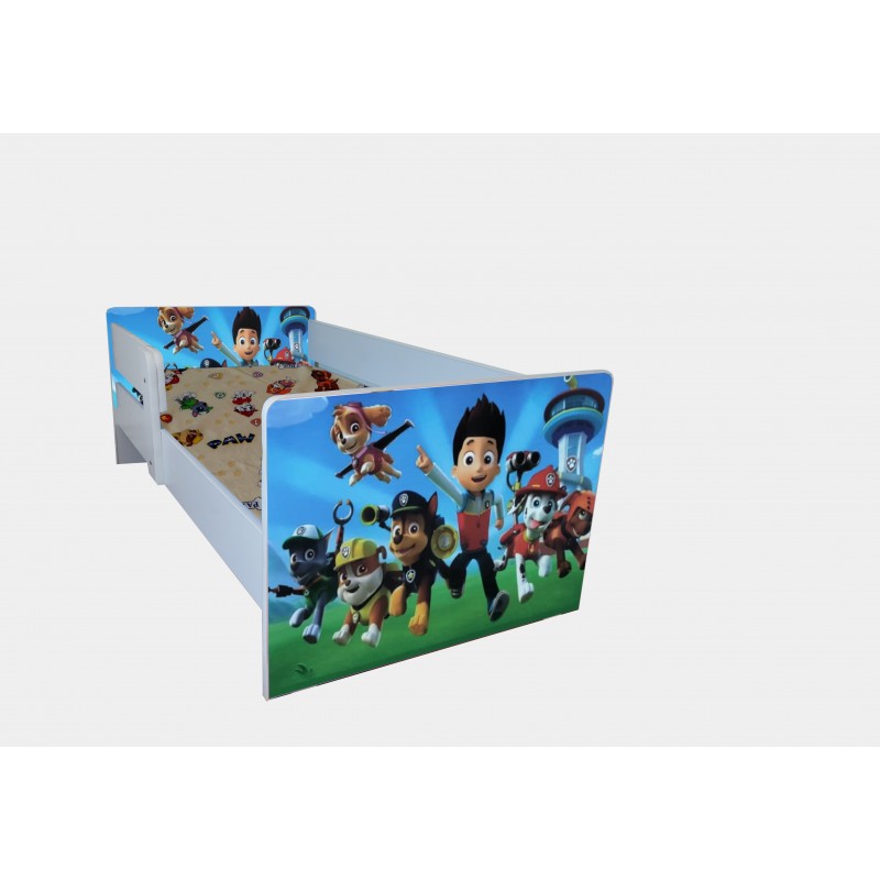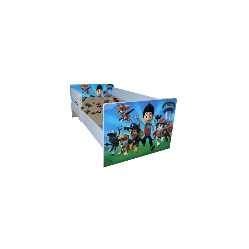 Materialele folosite pentru acest pat de copii: PAL melaminat de 18 mm, imagini imprimate laminate, bordura pvc de protectie, blat din pal hidrofugat 18 mm.