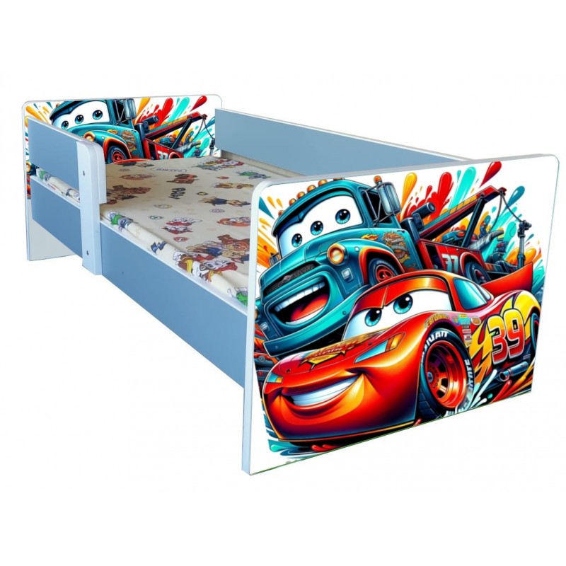 Materialele folosite pentru acest pat de copii: PAL melaminat de 18 mm, imagini imprimate laminate, bordura pvc de protectie, blat din pal hidrofugat 18 mm.