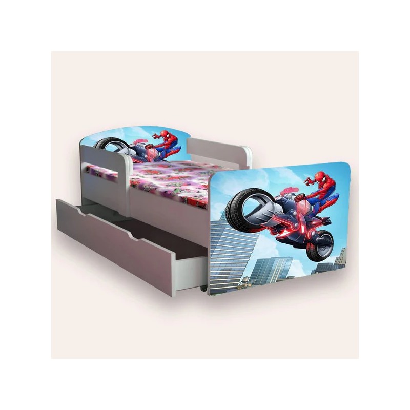 Patul de copii cu sertar vine cu saltea cadou din spuma de poliuretan de 6cm grosime si poate fi realizat in doua marimi: