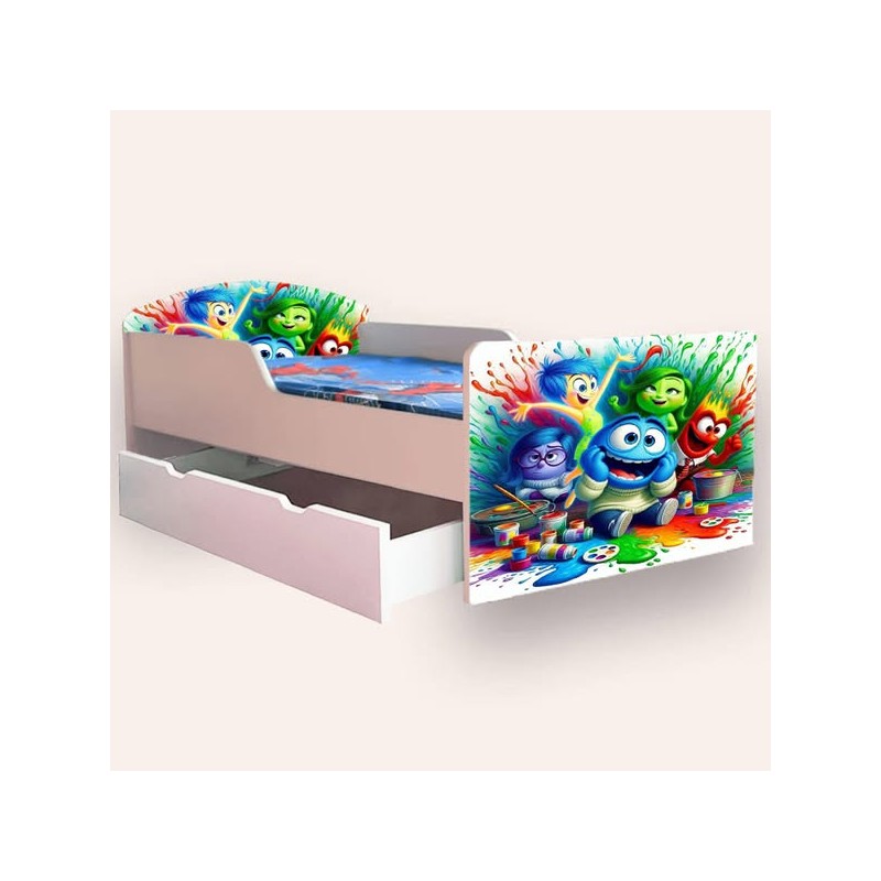 Materiale folosite pentru acest pat de copii: PAL melaminat de 18 mm, imagini imprimate laminate, bordura pvc de protectie, blat din pal de 18 mm.