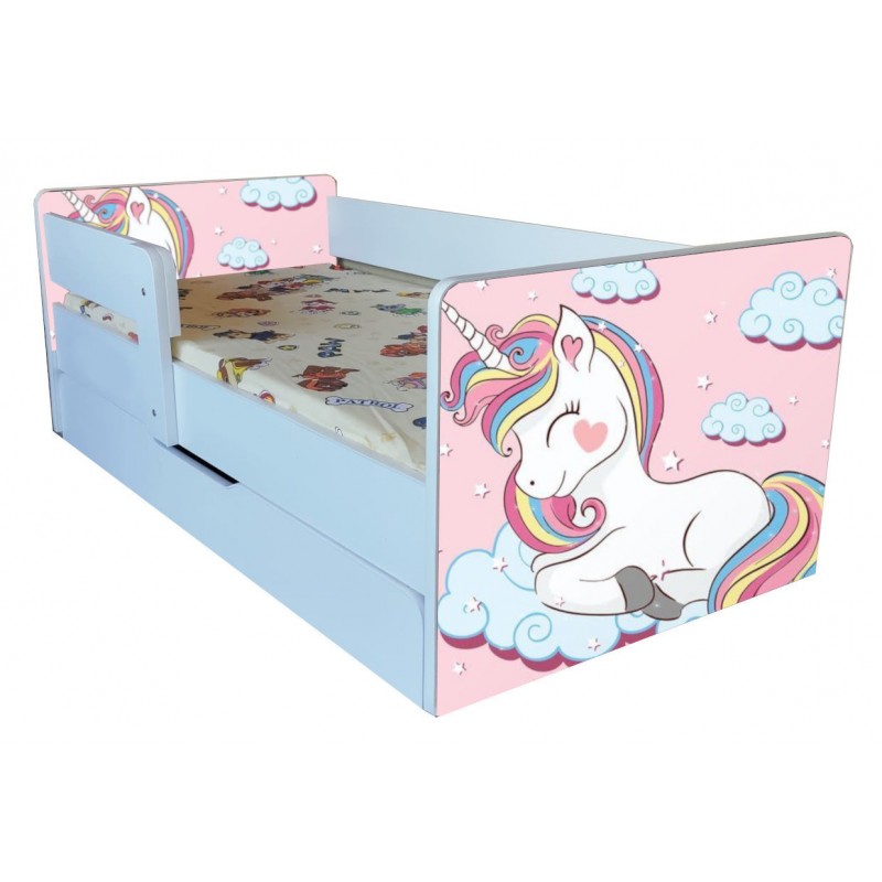 Pat pentru copii cu saltea si sertar, cu personajele preferate din desene animate.
