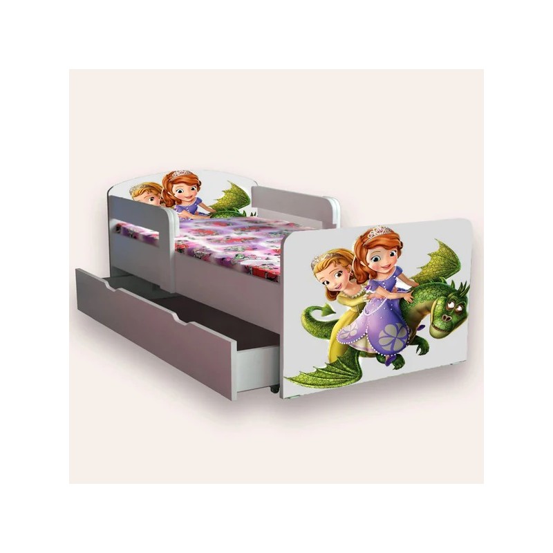 Patul de copii cu sertar vine cu saltea cadou din spuma de poliuretan de 6cm grosime si poate fi realizat in doua marimi: