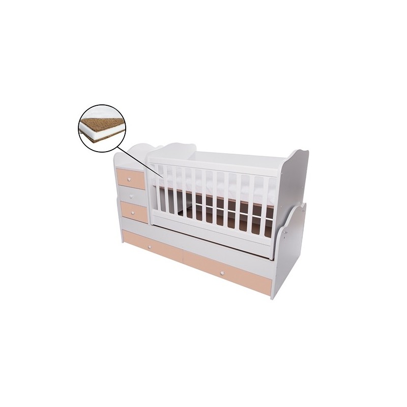 Comoda patutului poate fi folosita ca si suport pentru schimbat scutece si este detasabila.