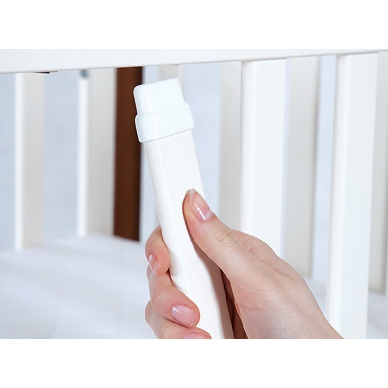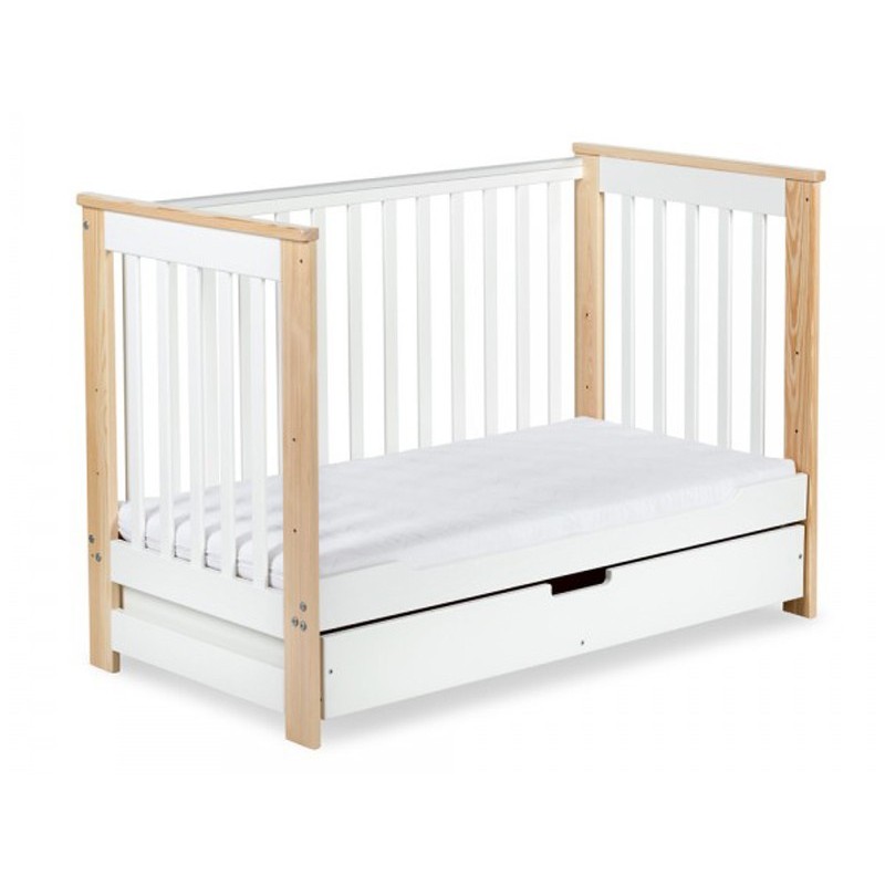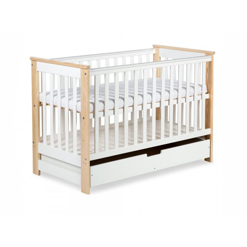 Designul modern si culoarea alb-natur, cu linii simple, dar elegante, va incadra patutul in orice tip de camera si va incanta pe toata lumea. Barele demontabile ii vor permite celui mic sa coboare si sa urce in patut fara sa escaladeze gratiile inalte. Patutul este prevazut cu un sertar incapator pentru accesorii, scutece sau hainute.